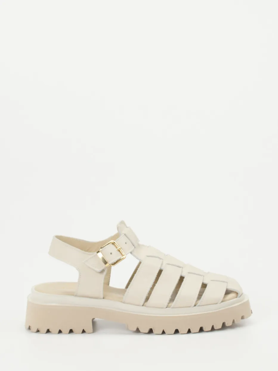 Damen Andrea Puccini – Fischersandalen aus Lammleder Cremeweiß