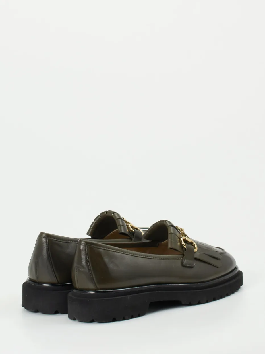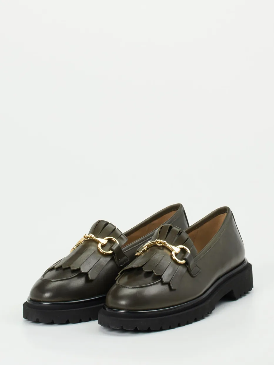 Damen Andrea Puccini – Fransen-Loafer aus Kalbleder oliv