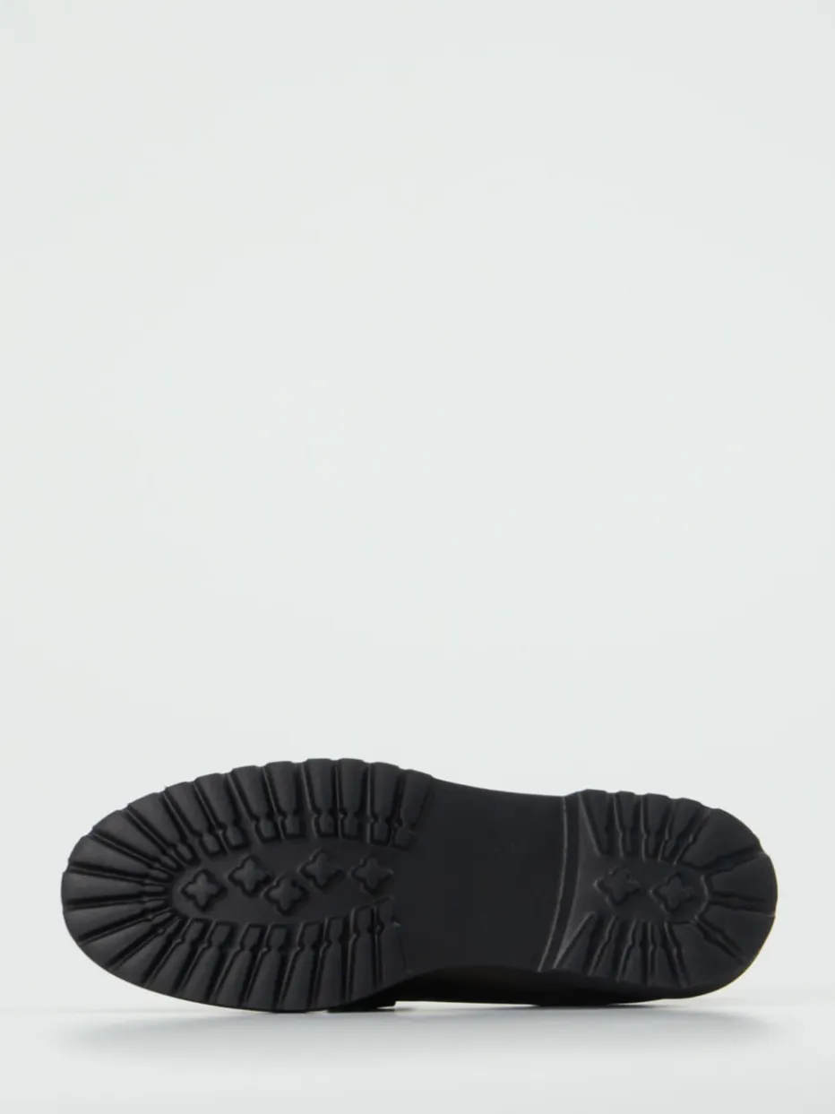 Der Fransen-Loafer von Andrea Puccini überzeugt mit moosgrünem Kalbleder, goldfarbener Trensenkette und robuster Leichtzellsohle – eine gelungene Fusion aus Preppy-Stil und Trendbewusstsein.