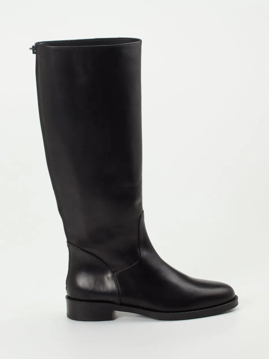 Dieser kniehohe Stiefel vereint edles Kalbleder mit minimalistischer Reitstiefel-Ästhetik. Der rückseitige Reißverschluss unterstreicht sein stilvolles Design.