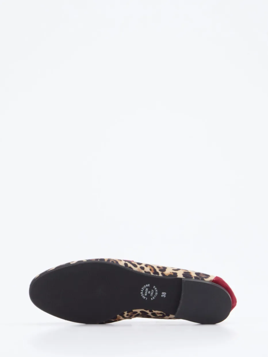 Ein expressiver Damen-Loafer, der mit samtigem Veloursleder, auffälligem Leopardenmuster und raffiniertem Farbspiel Stilbewusstsein unterstreicht.