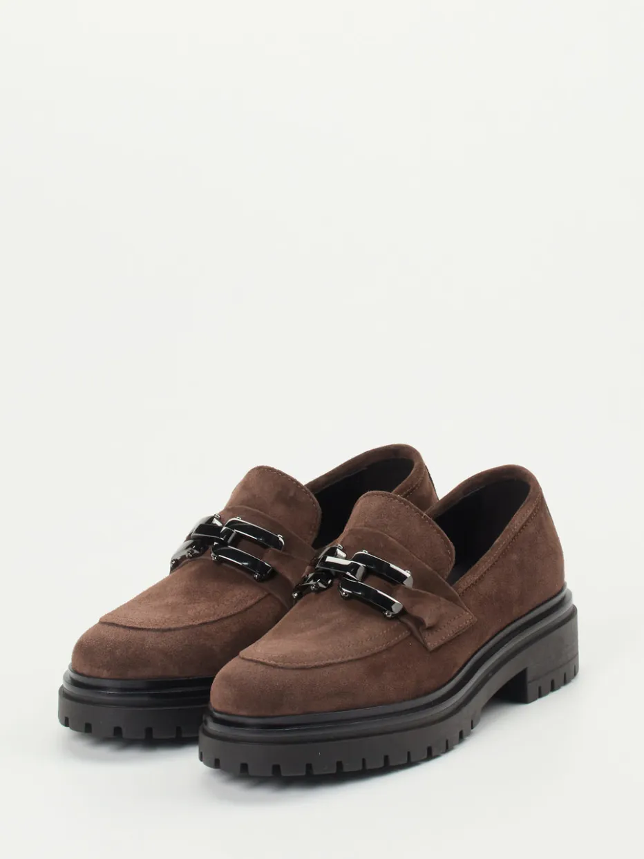 Hochwertiges Veloursleder und eine markante Chunky-Sohle vereinen sich bei diesem Loafer zu trendbewusster Eleganz. Perfekt für stilvolle Alltags- und Business-Looks.