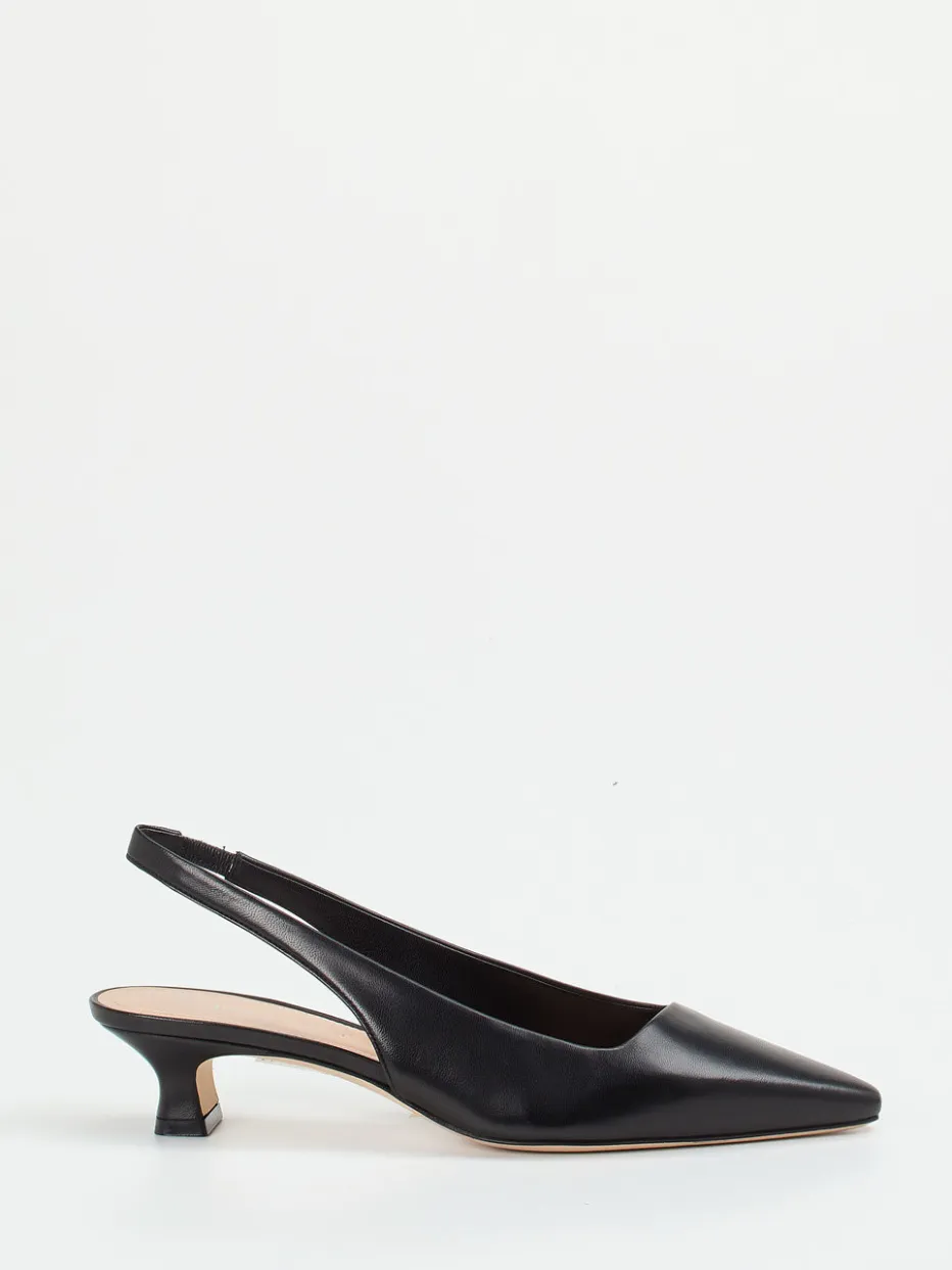 Feines Ziegenleder, elegante Linienführung und ein bequemer Kitten-Heel vereinen sich in diesem Slingback-Modell zu zeitlosem Chic – stilvoll interpretiert für moderne Anlässe.