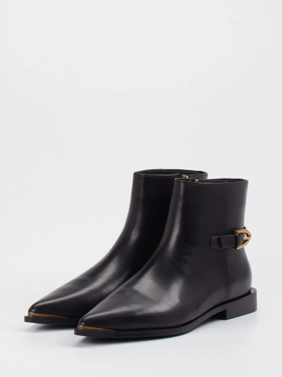 Andrea Puccini interpretiert klassische Damen-Stiefeletten neu: Diese schwarze Ankle Boot vereint minimalistisches Design mit luxuriösen Akzenten.