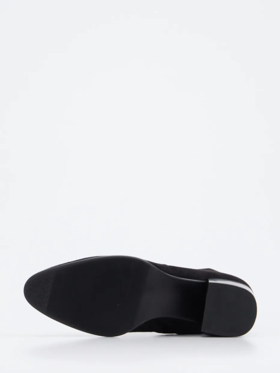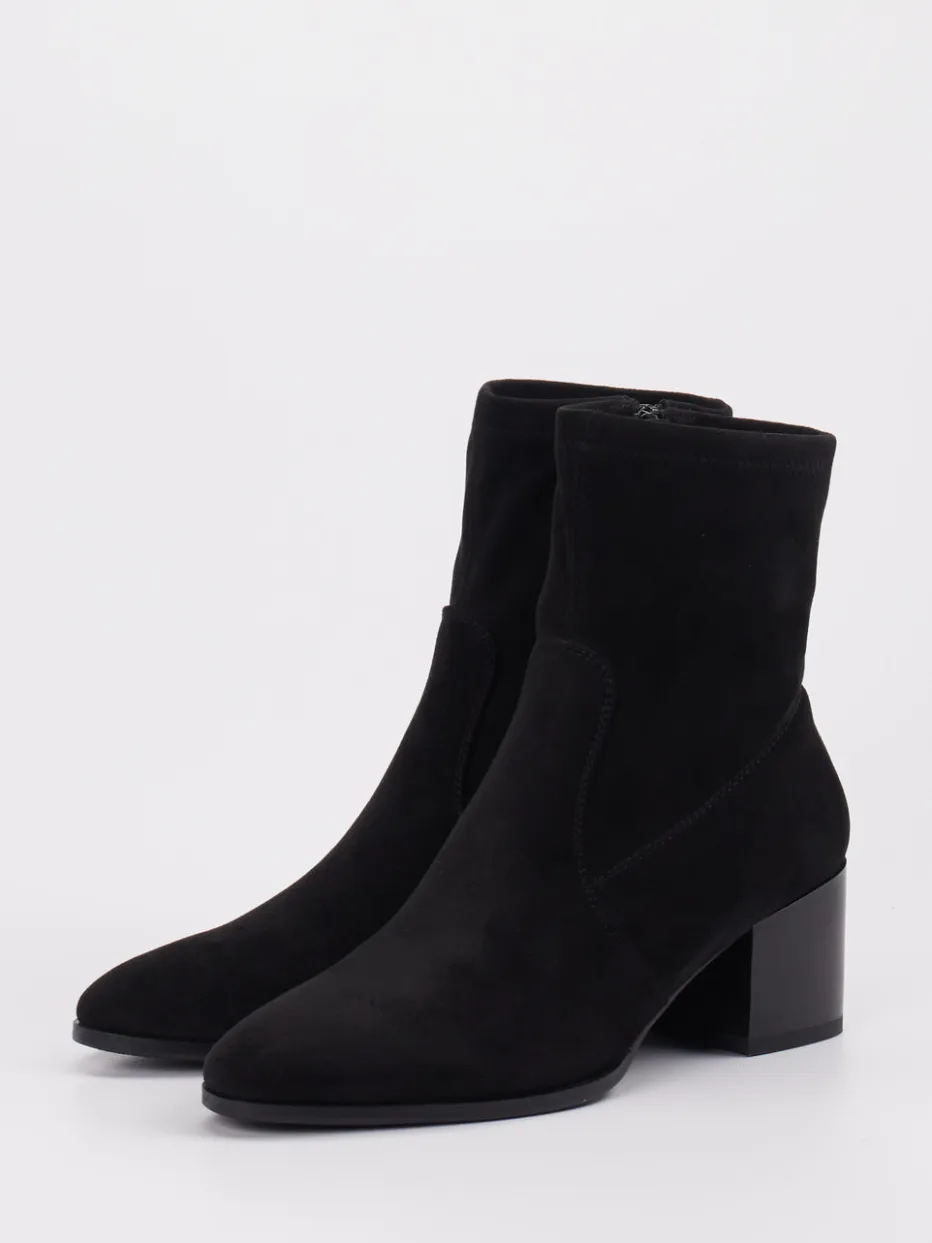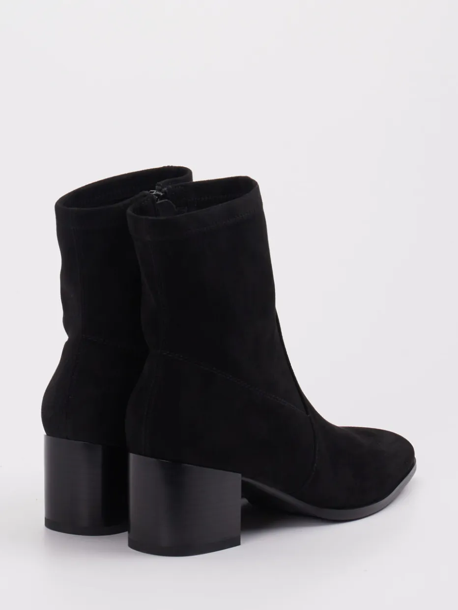 Diese schmal geschnittene Stiefelette in matter Velourslederoptik überzeugt mit einem zeitlosen Design und dezenter Eleganz – perfekt für urbane Looks im Herbst und Winter.