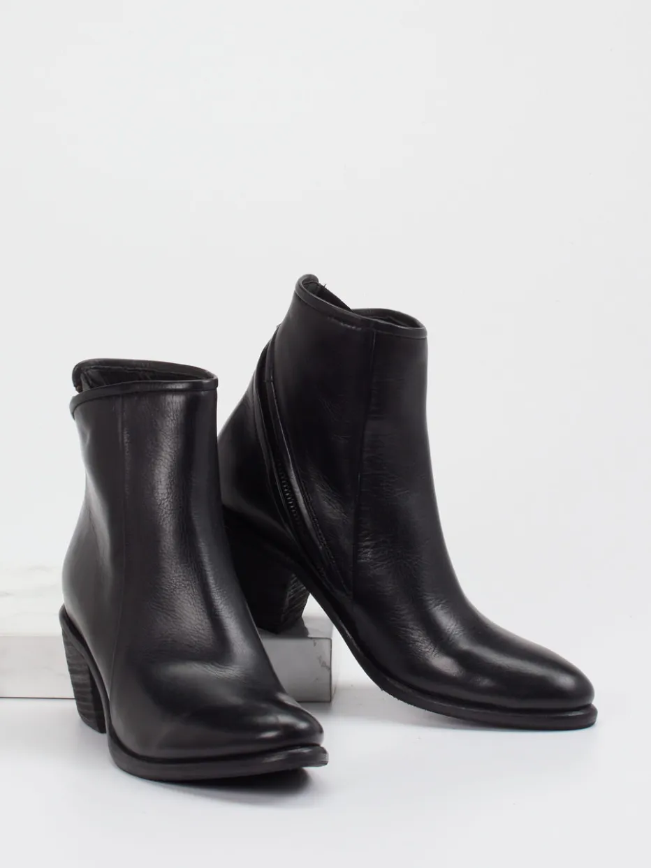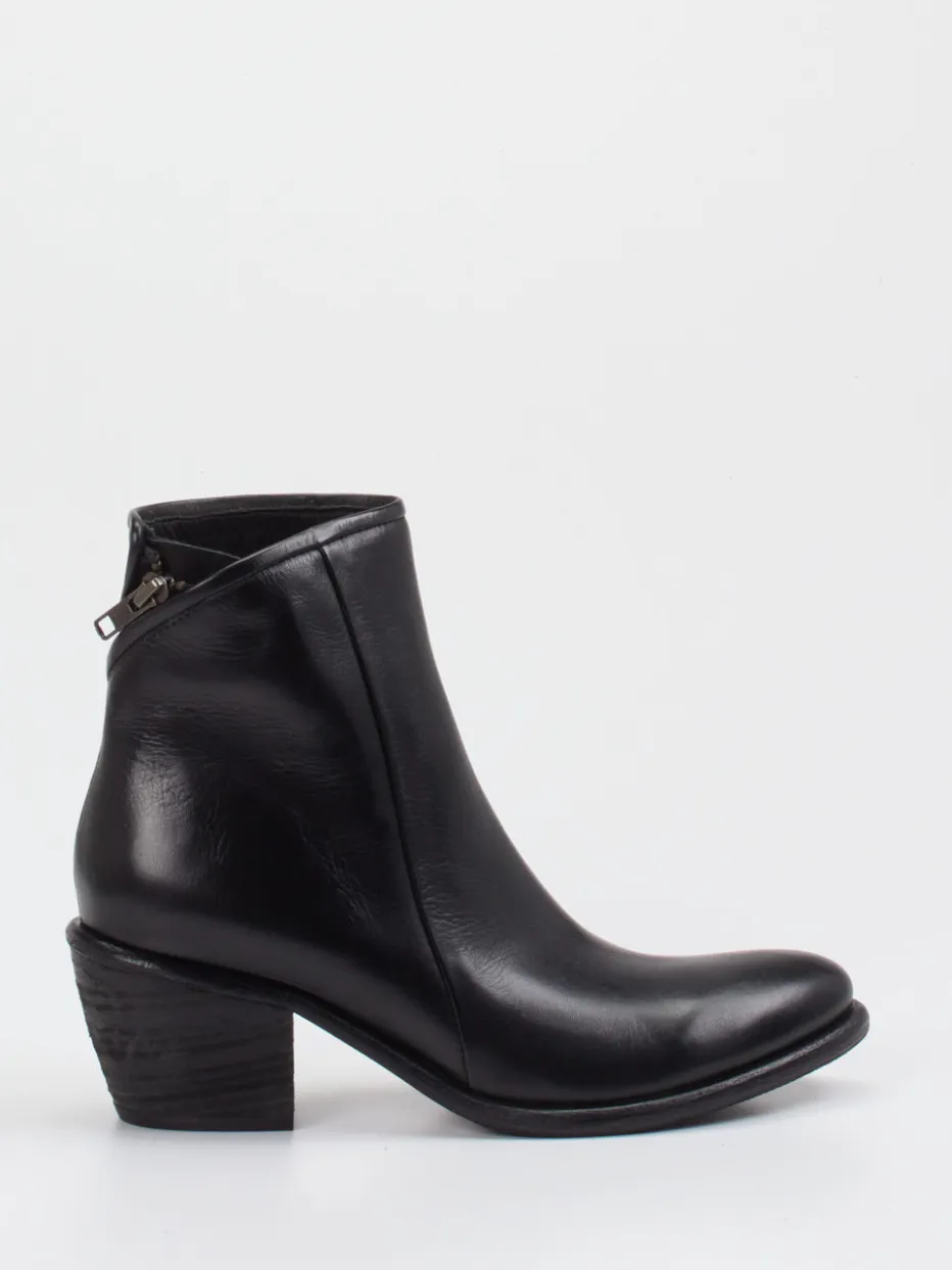 Die Stiefelette von Andrea Puccini vereint hochwertiges Kalbleder mit glänzender Oberfläche und minimalistischem Design. Der rückwärtige Reißverschluss setzt einen raffinierten Akzent.