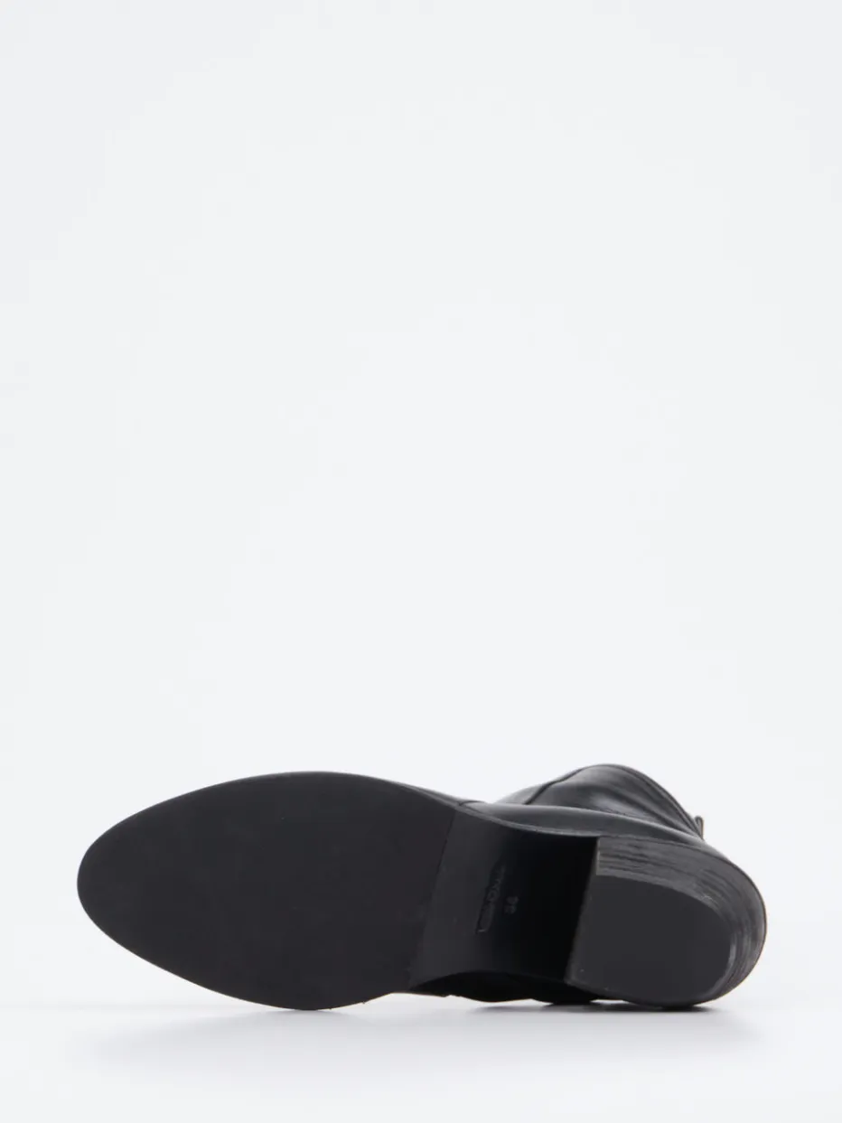 Moderner Klassiker mit raffiniertem Detail.Andrea Puccini präsentiert eine elegante Stiefelette für Damen mit klarer, femininer Form. Ob im Businessmeeting oder beim Stadtbummel – das Modell überzeugt aus edlem Kalbleder mit dezent glänzender Oberfläche. In klassischem Schwarz gehalten, betont die leicht spitz zulaufende Silhouette den modernen Chic. Der rückwärtige Metallreißverschluss setzt einen ungewohnten Designakzent, während der Blockabsatz in Trichterform (5,5 cm) sicheren Stand und ausdrucksstarke Proportionen bietet. Die halbe Leder-/Gummisohle rundet das hochwertige Innenleben funktional ab. Ideal zu schmalen Stoffhosen oder fließenden Röcken. Ein vielseitig kombinierbares City-Essential mit markentypischer Eleganz.