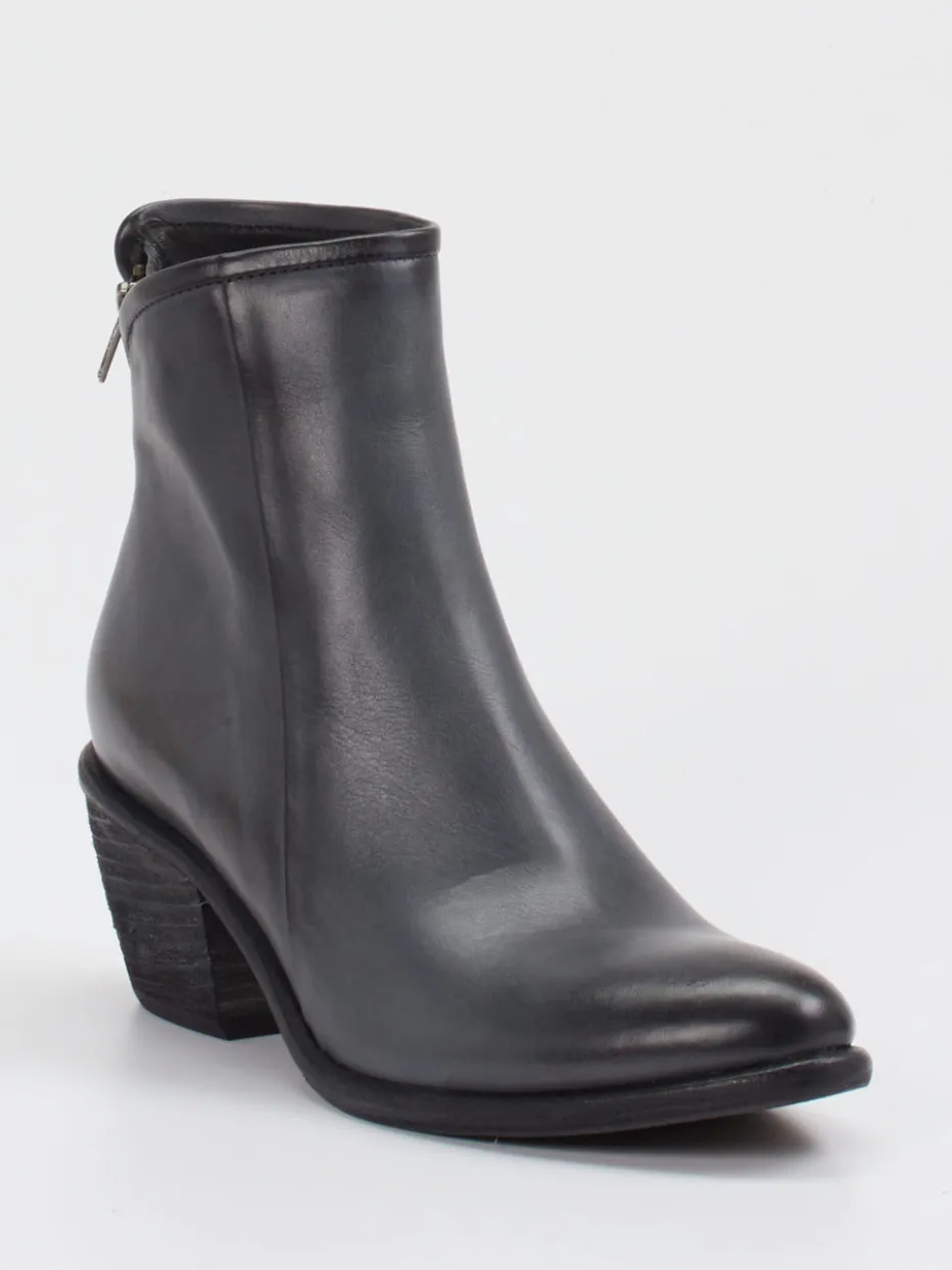 Puristische Eleganz in Navy. Die Marke Andrea Puccini präsentiert hier eine Stiefelette, die stilvolle Moderne mit handwerklicher Raffinesse verbindet. Perfekt für den Weg ins Büro oder den Stadtbummel verbindet das Modell hochwertiges Kalbleder mit einer glatten, matten Oberfläche. Die klassische, leicht taillierte Silhouette wird durch einen rückseitigen, silberfarbenen Reißverschluss akzentuiert. Der mittelhohe 5,5 cm Trichterabsatz und die halb aus Gummi und Leder bestehende Laufsohle garantieren sicheren Stand und femininen Auftritt. In klarem Navyblau gehalten, passt der Stiefel ideal zu schmalen Jeans oder Business-Röcken. Als Trendpiece im Geist von „Quiet Luxury“ überzeugt er durch reduzierte Formensprache und Qualität. Stilvielfalt und Tragekomfort – charakteristisch für Andrea Puccini.