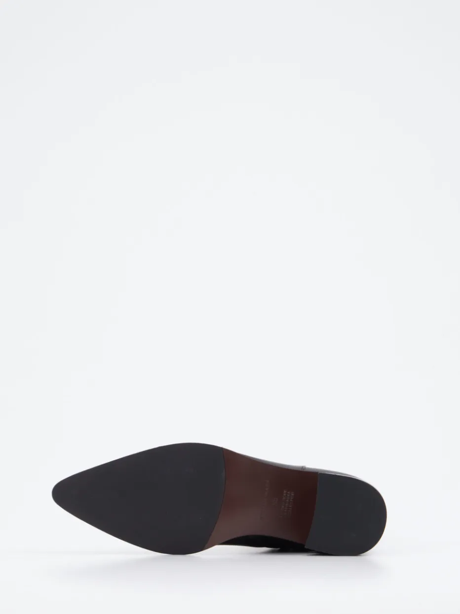 Elegant und klar geformt präsentiert sich diese Stiefelette aus weichem Lammleder. Die dezente Glanzoptik und der komfortable Blockabsatz vereinen Stil und Alltagstauglichkeit.
