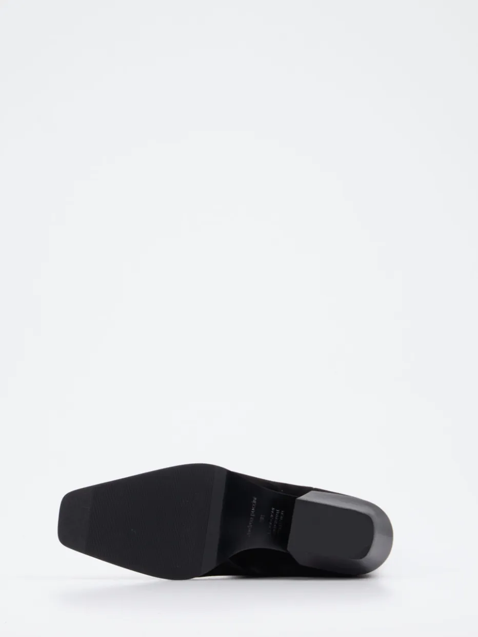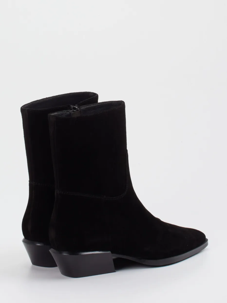 Diese Stiefelette kombiniert hochwertiges Veloursleder mit modernem Western-Design und tritt puristisch wie stilbewusst auf.