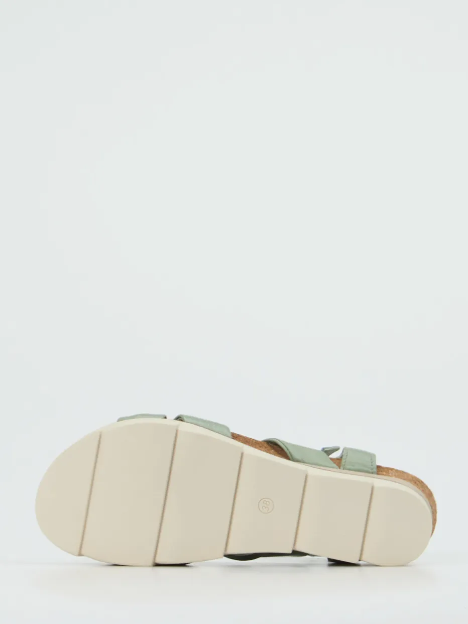 Perfekt gestylt durch warme Tage.Andrea Sabatini präsentiert eine Keilsandalette in salbeigrünem Lammleder – ideal für Freizeit und Urlaub. Das weich beschaffene, matt glänzende Leder, kombiniert mit geknoteten Riemen und feinen Nähten, verleiht dieser Sandale einen femininen Look im Casual Chic. Der offene Schnitt mit Knöchelriemen und Schnalle sorgt für sicheren Halt, während die ergonomisch geformte Kork-Zwischensohle und profilierte Gummisohle ein angenehmes Laufgefühl bieten. Als Teil der Soft Pastels SS24 und Comfort Sandals Trends lässt sich das Modell hervorragend zu Leinenkleidern oder naturfarbenen Accessoires kombinieren. Sommerkomfort mit modischem Naturanspruch – typisch Andrea Sabatini.