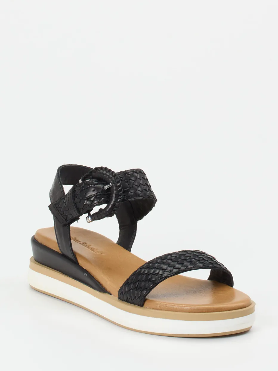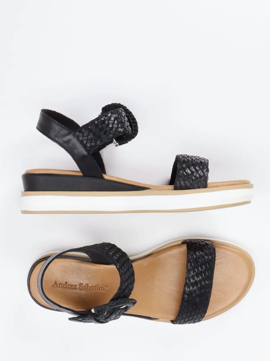 Die schwarz geflochtene Plateausandale von Andrea Sabatini verbindet mediterranen Charme mit sommerlicher Leichtigkeit und hohem Komfort.