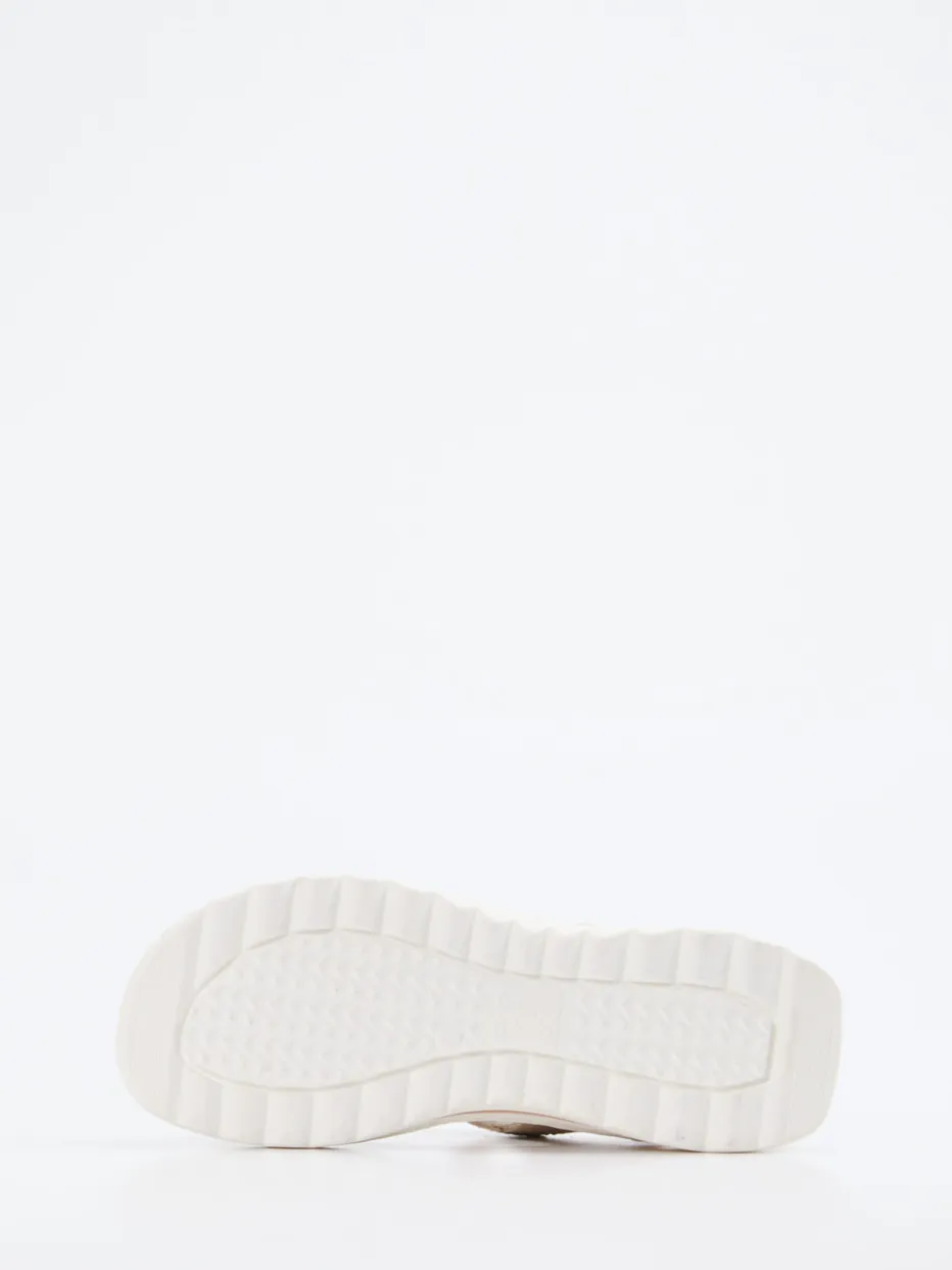 Sommerkomfort mit Glanzmoment.Die Marke Ara präsentiert eine Komfortsandale mit optimierter Passform für Alltag und Reise. Ideal für lange Sommertage bietet das Modell dank gepolsterter High-Soft-Innensohle und breiter, individuell einstellbarer Klettverschlüsse angenehmen Tragekomfort. Edles Metallicleder mit geometrischem Prägemuster auf dem Vorderfuß trifft auf beigefarbenes Veloursleder im Fersenbereich. Abgerundet wird das Design durch eine fein profilierte PU-Sohle mit roségoldfarbenem Streifendetail und ein stilbewusstes, leicht keilförmiges Silhouettenprofil. Der offene Schnitt wirkt luftig und kommt minimalistisch zur Geltung. Perfekt kombinierbar zu Leinenhosen oder Sommerblusen. Mehrwert durch Ara-Komforttechnologie in trendaktueller Formensprache.