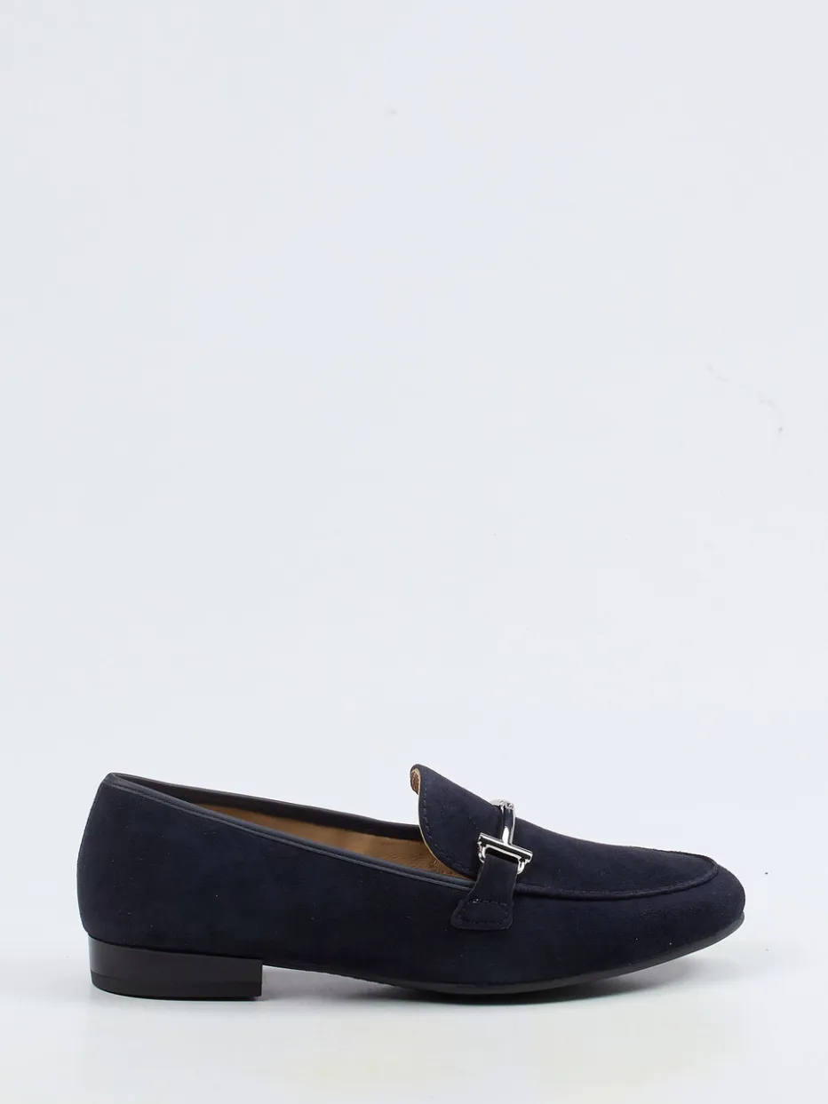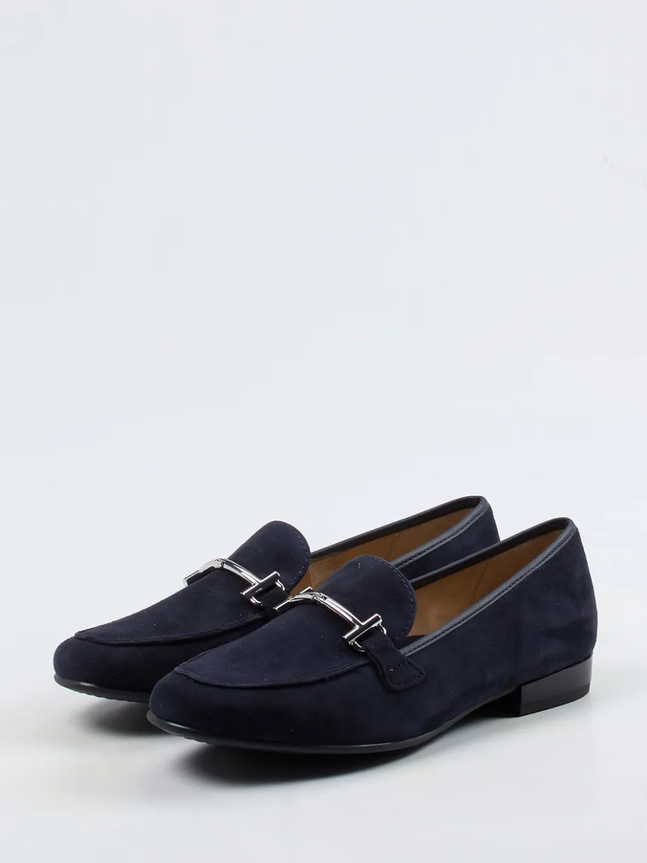 Das dunkelblaue Veloursleder zeigt sich samtig-matt und wird durch eine silberfarbene Spange akzentuiert. Die klassische Silhouette mit flachem Absatz und flexibler Gummisohle unterstreicht den minimalistischen Look und sorgt dank High Soft Fußbett für angenehmen Komfort. In der Schlupfform überzeugt der Schuh in Preppy-inspirierter Quiet-Luxury-Ästhetik. Kombiniert mit grauen Stoffhosen oder hellen Röcken entfaltet er seine zeitlose Wirkung besonders gut.