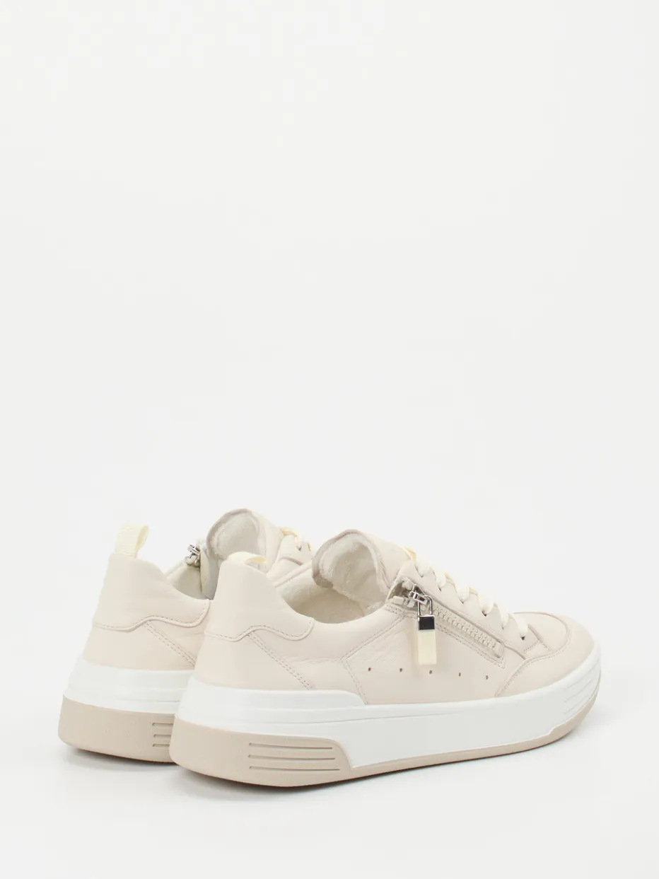 Ara präsentiert einen komfortorientierten Damen-Sneaker in Low-Top-Ausführung. Ob auf dem Weg zur Arbeit oder beim Bummel durch die Stadt – dieses Modell bietet stilvollen Halt und unkompliziertes Anziehen durch Schnürung plus seitlichem Reißverschluss. Beigefarbenes Kalbleder mit matter Oberfläche verleiht dem Klassiker seinen edlen Minimalismus und passt perfekt zur „Soft Neutrals“-Ästhetik der Saison. Ein weich gepolstertes, ergonomisches Fußbett und das atmungsaktive Textilfutter ergänzen den Funktionalitätsanspruch. Dezente Ton-in-Ton-Nähte, praktische Zuglasche und rutschfeste Gummisohle unterstreichen Alltagstauglichkeit und Qualität. Ein stilvoller Begleiter mit angenehmer Weite H aus dem Hause Ara – für zeitgemäßen Komfort mit ästhetischem Anspruch.