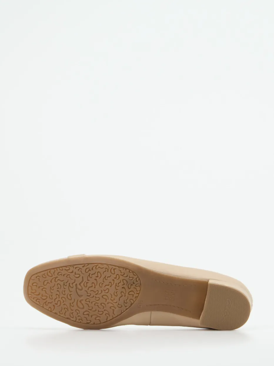 Beiger Klassiker mit glänzendem Akzent.Die Marke Ara präsentiert klassische Pumps aus feinem Kalbleder, designt in der bequemen Weite H. Perfekt für lange Büro-Tage oder stilvolle Alltagslooks: Das sandfarbene Kalbleder zeigt sich samtig matt und wird durch eine auffällige goldfarbene Zierkette auf dem Carré-förmig gestalteten Blatt akzentuiert. Die Schlupfform erleichtert das Anziehen; ein stabiler Blockabsatz mit goldener Kante ergänzt das elegante Gesamtbild. Die dezente Silhouette wirkt zeitlos, während Elemente wie die Trensengarnitur und Metallicdetails das Modell an den Trend „Quiet Luxury“ anlehnen. Harmoniert ideal mit beigefarbener Tasche oder goldenen Accessoires. Hochwertige Handwerkskunst trifft auf laufkomfortorientiertes Design von Ara.
