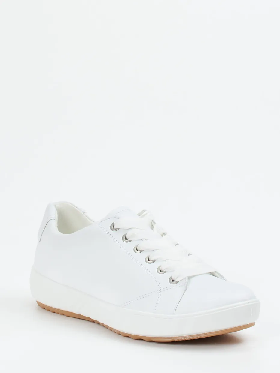 Schlichte Eleganz für jeden Tag.Ara bietet mit diesem weißen Low-Top-Sneaker ein Modell für Alltag und Freizeit. Der Sneaker aus hochwertigem Kalbleder mit matter Oberfläche setzt auf eine cleane, klassische Form und passt perfekt zu minimalistischen Looks. Silberfarbene Ösen, Ton-in-Ton-Nähte und die dezente Schnürung unterstreichen das edle Gesamtbild. Der gepolsterte Einstieg erhöht den Tragekomfort, während das Innenfutter mit Recyclinganteil nachhaltige Akzente setzt. Die weiße Gummisohle mit rutschhemmendem Profil bietet sicheren Halt. Inspiriert von Trends wie Quiet Luxury und Clean Sneaker SS25, ist das Modell ideal für Casual-Outfits – kombinierbar etwa mit leichten Steppjacken oder Canvas-Taschen. Ein stilvoller Alltagsbegleiter mit Komfortanspruch und modernem Anspruch.