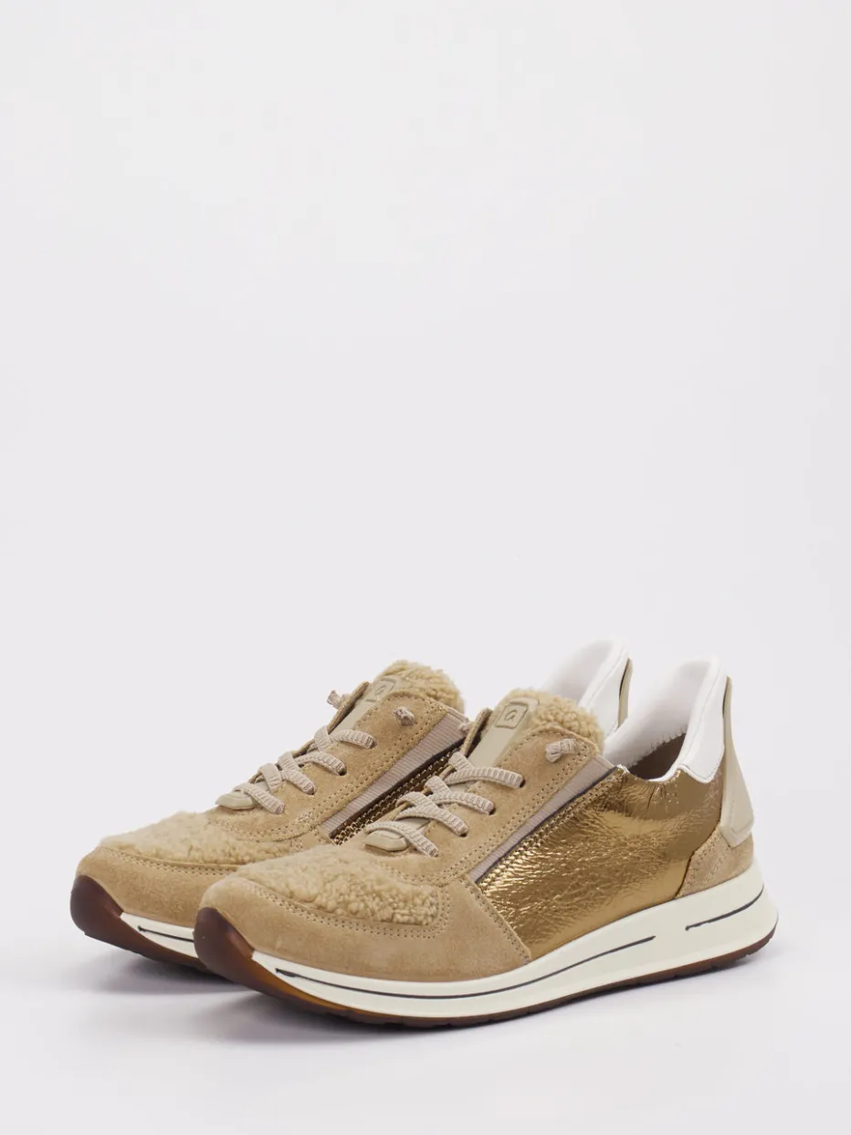 Damen Ara – Sneaker aus Leder-Mix beigegold