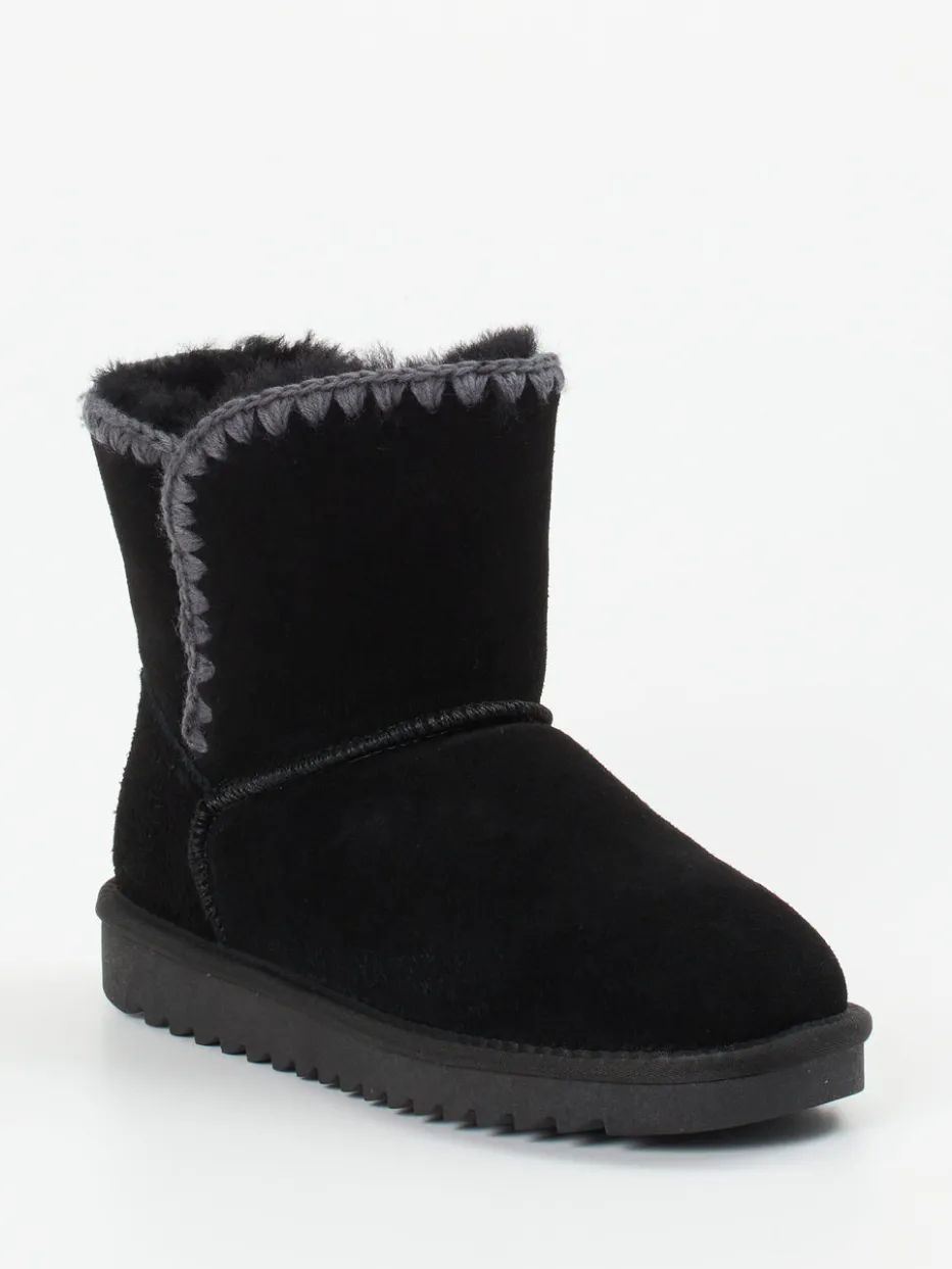 Warmer Komfort für kalte Tage.Die Marke Ara präsentiert eine Damen-Stiefelette, die Alltagstauglichkeit und Gemütlichkeit harmonisch verbindet. Mit samtig angeschliffenem Veloursleder in tiefem Schwarz und einer kontrastierenden grauen Häkelkante setzt dieses Modell dezente Style-Akzente. Das echte Lammfellfutter sorgt für angenehme Wärme, während die profilierte Gummisohle auf glatten Untergründen sicheren Halt bietet. Die leicht erhöhte Schafthöhe und die komfortable H-Weite machen sie ideal zum Schlupfen – gewappnet für skandinavisch inspirierte Winterlooks. Kombiniert mit Strick oder Thermo-Leggings entsteht ein cozy Styling mit Understatement. Ein Begleiter für entspannte Wintermomente mit dem typischen Ara-Komfort.