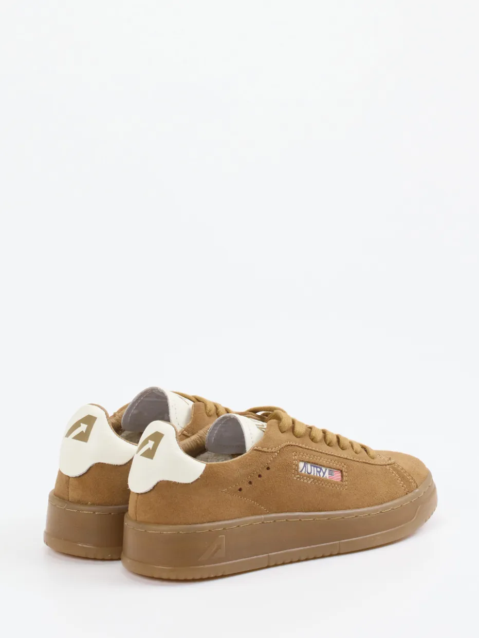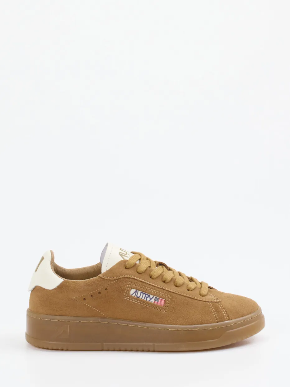 Autry präsentiert mit diesem Low-Top-Sneaker ein Modell für entspannte Freizeit-Outfits. Das cognacbraune Veloursleder mit matter, weicher Oberfläche trifft auf eine tonale Gummisohle und sorgt für eine harmonische Anmutung. Klassische Silhouette, kontrastfarbene Logo-Fersenkappe und dezente Perforationen betonen die sportlich-reduzierte Ästhetik. Die Schnürung sowie der Logo-Patch mit US-Flagge runden das minimalistische Design ab. Ideal für casual Looks, die Wert auf Qualität und Zurückhaltung legen. Zeitloses Design kombiniert mit subtiler Retro-Note – markentypische Autry-Authentizität inklusive.