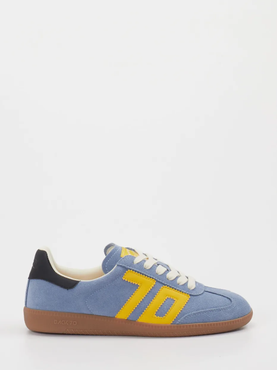 Trendfarbe trifft Vintage-Flair. Back 70 präsentiert mit diesem Retro-Sneaker ein ausdrucksstarkes Damenmodell im Stil der 90er. Ideal für urbane Freizeitlooks oder sportlich-entspannte Outfits: Das jeansblaue Modell überzeugt mit weichem Veloursleder, gelber Applikation und einer flach geschnittenen Silhouette. Textilelemente im Inneren sorgen für angenehmen Tragekomfort, während die profilierte Gummisohle zuverlässige Bodenhaftung garantiert. Der Colour-Blocking-Look wirkt modern und auffällig, ohne an Authentizität zu verlieren. Eine Schnürung rundet das Design funktional ab. Ein unisex-tauglicher Eyecatcher mit Streetstyle-Attitüde – typisch Back 70.