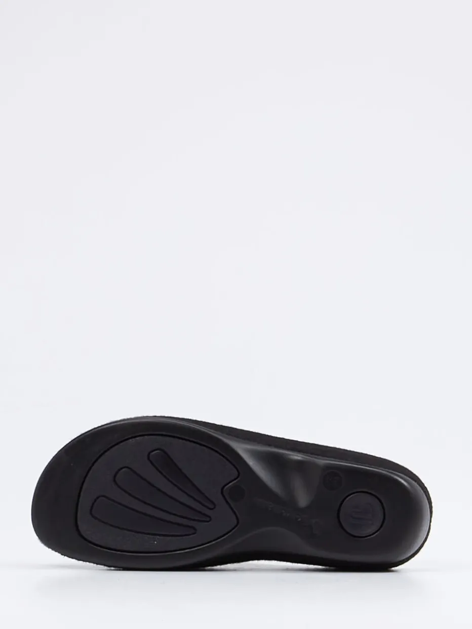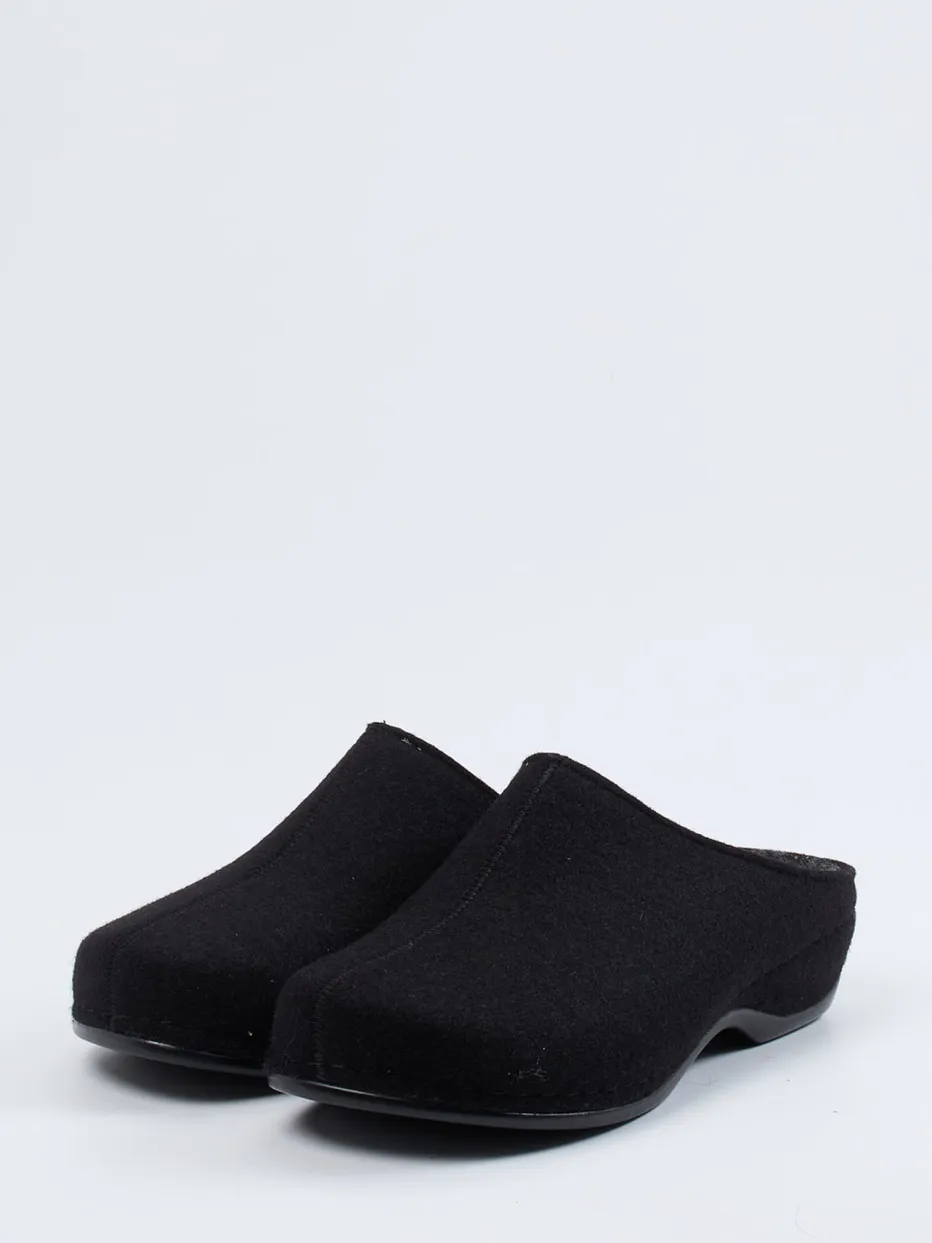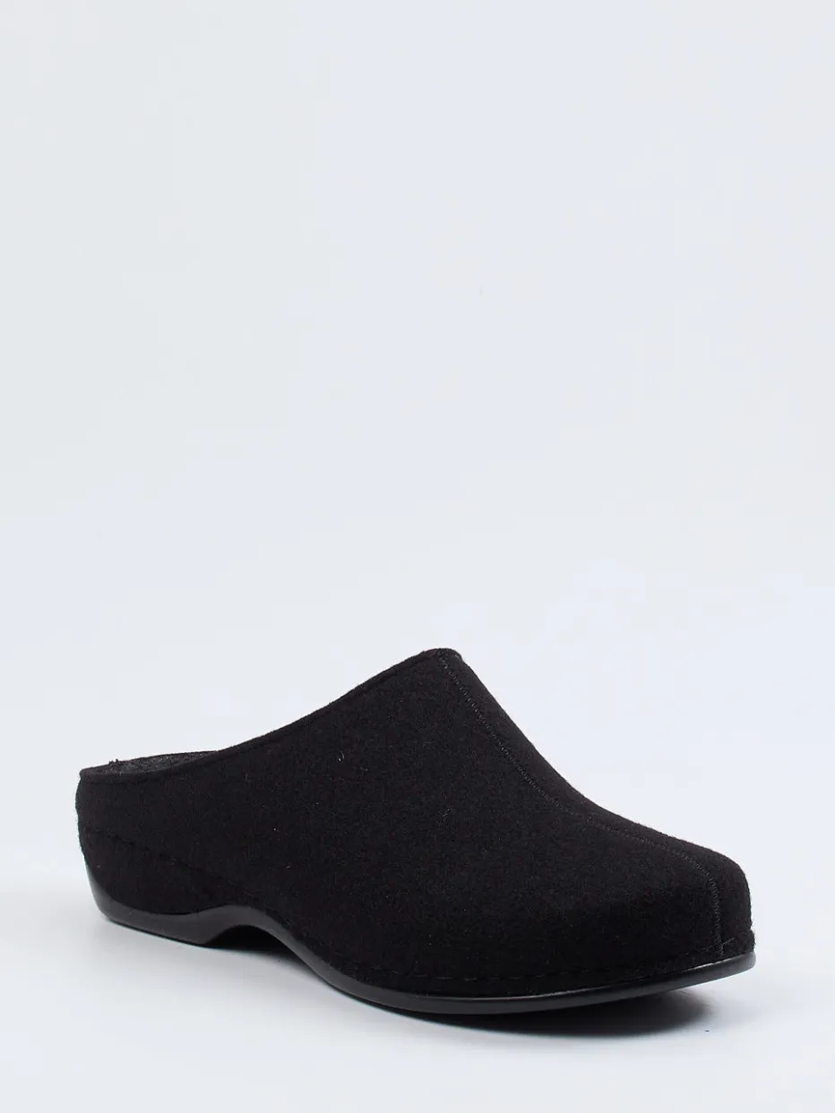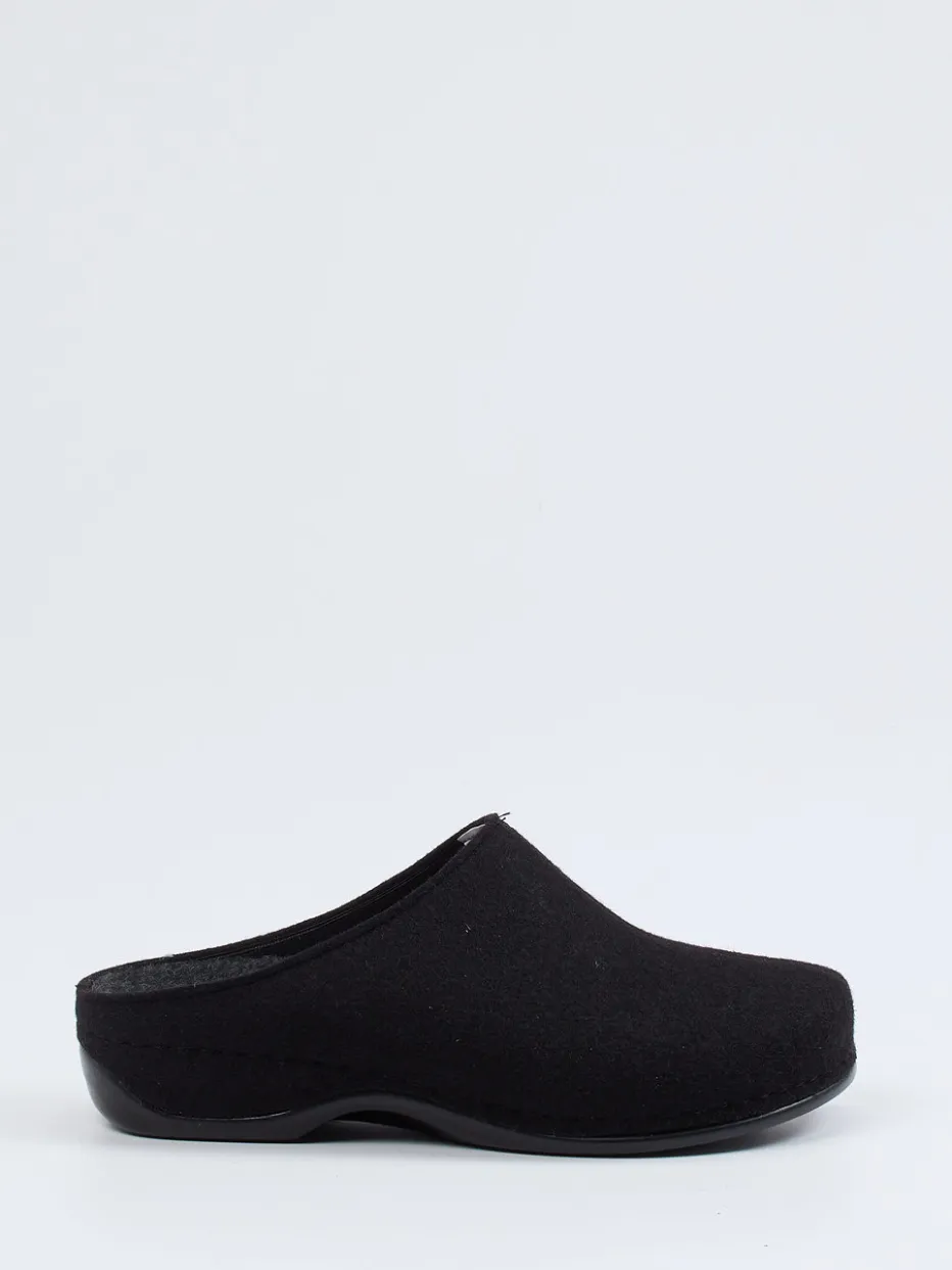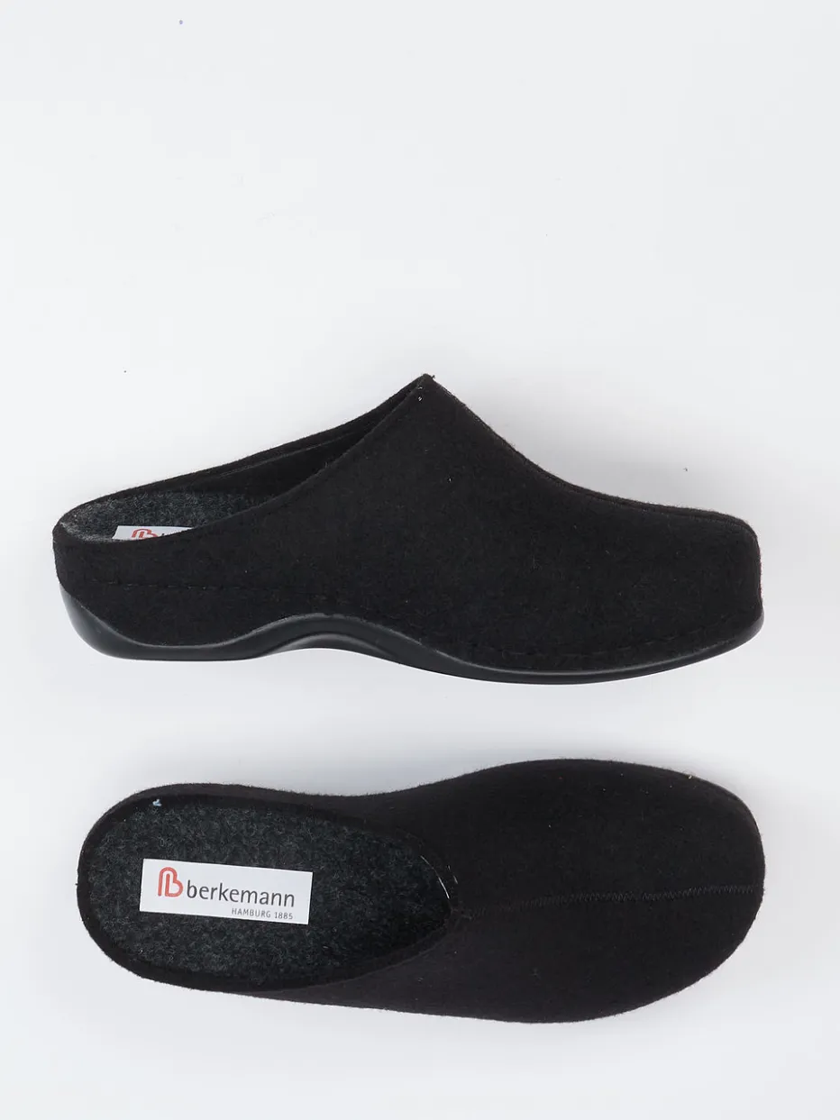 Schlicht, bequem, funktional.Berkemann präsentiert mit diesen Filzpantoffeln ein Unisex-Modell für entspanntes Wohnen und gepflegten Komfort. Für ruhige Stunden daheim bietet die Kombination aus schwarzem Wollfilz und ergonomischer Laufsohle maximale Bequemlichkeit. Das matte Finish mit Ton-in-Ton-Nähten verleiht dem geschlossenen, rund geformten Leisten eine zurückhaltende Eleganz. Die flexible Gummisohle mit rutschhemmendem Profil sorgt für sicheren Halt, während das warme Textilfutter den Fuß umschließt. Der Slip-on-Stil betont das funktionale Design, passend zum Soft Comfort Trend AW24. Ideal zu Loungewear oder feinen Wollsocken. Ein Premium-Hausschuh mit markentypischer Ergonomie und textilem Wohlfühlkomfort.