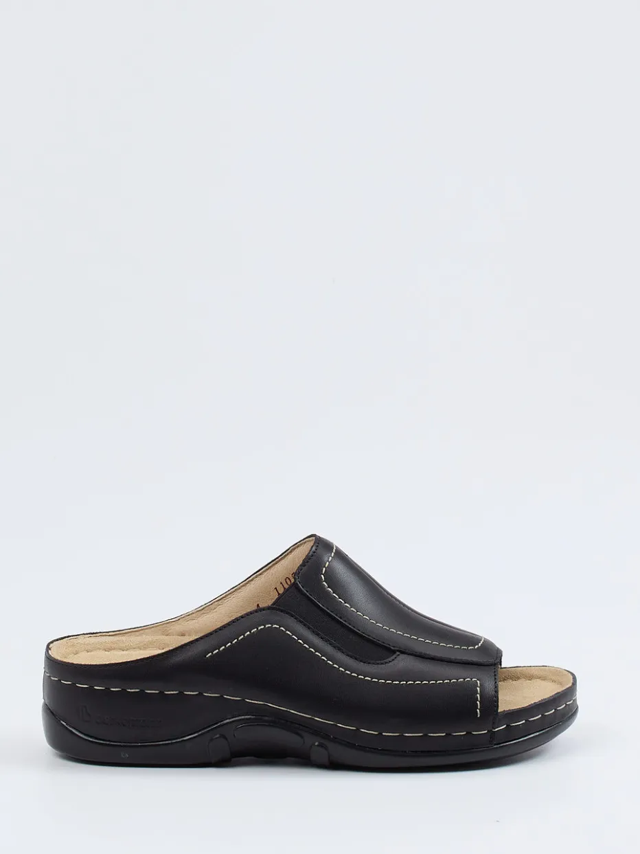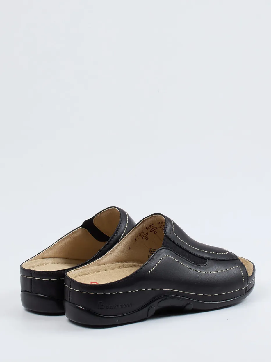 Diese Pantolette aus hochwertigem Kalbleder verbindet orthopädisches Design mit einem modernen Komfortanspruch. Ideal für Alltag und Zuhause – stilvoll und funktional zugleich.