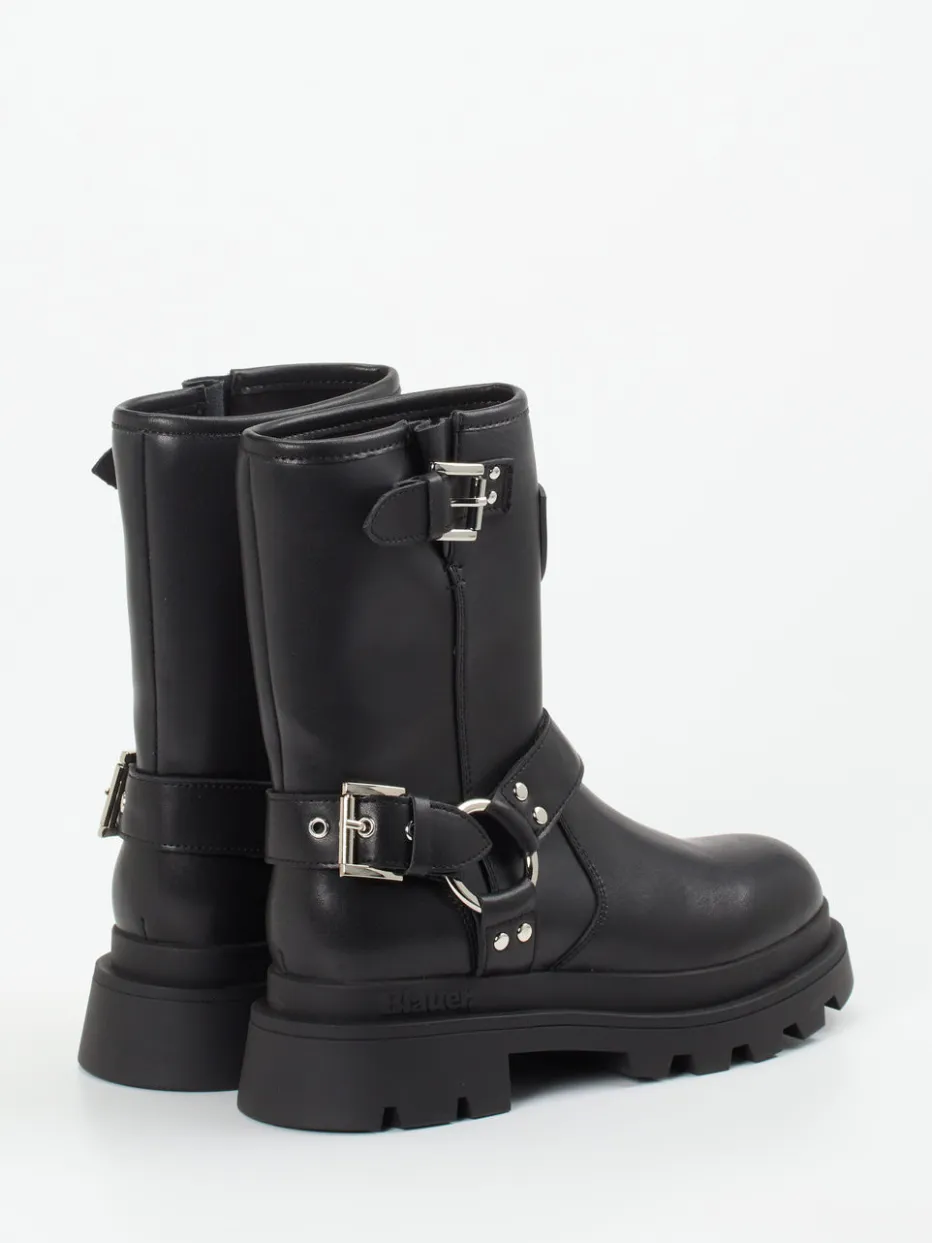 Für starke Looks mit urbanem Charakter.Blauer zeigt mit dieser Damen-Stiefelette eine kraftvolle Interpretation klassischer Biker Boots. Ideal für Tage, an denen ein ausdrucksstarkes Styling gefragt ist: Das schwarze Kalbleder, matt ausgeführt, verleiht dem geraden Schaft Struktur und Tiefe. Zierschnallen in silberner Optik und ein geprägtes Logo am Schaft setzen prägnante Akzente. Die massive Gummisohle mit tiefem Profil unterstreicht den Heavy-Sole-Trend und gibt sicheren Halt bei urbanen Aktivitäten. Der Schlupfeinstieg mit Elastikelement erleichtert das Anziehen, während der Look klar rebellisch bleibt. Besonders harmonisch wirkt die Kombination zu einer Lederjacke oder Skinny-Jeans. Ein Biker-Boot mit Komfort-Faktor und Stil-Potenzial – ganz im urbanen Blauer-Spirit.