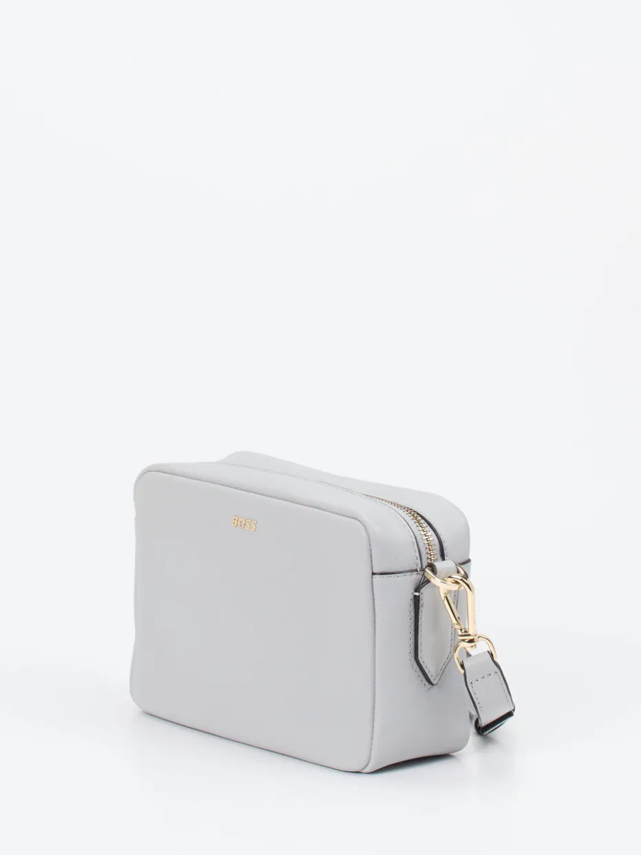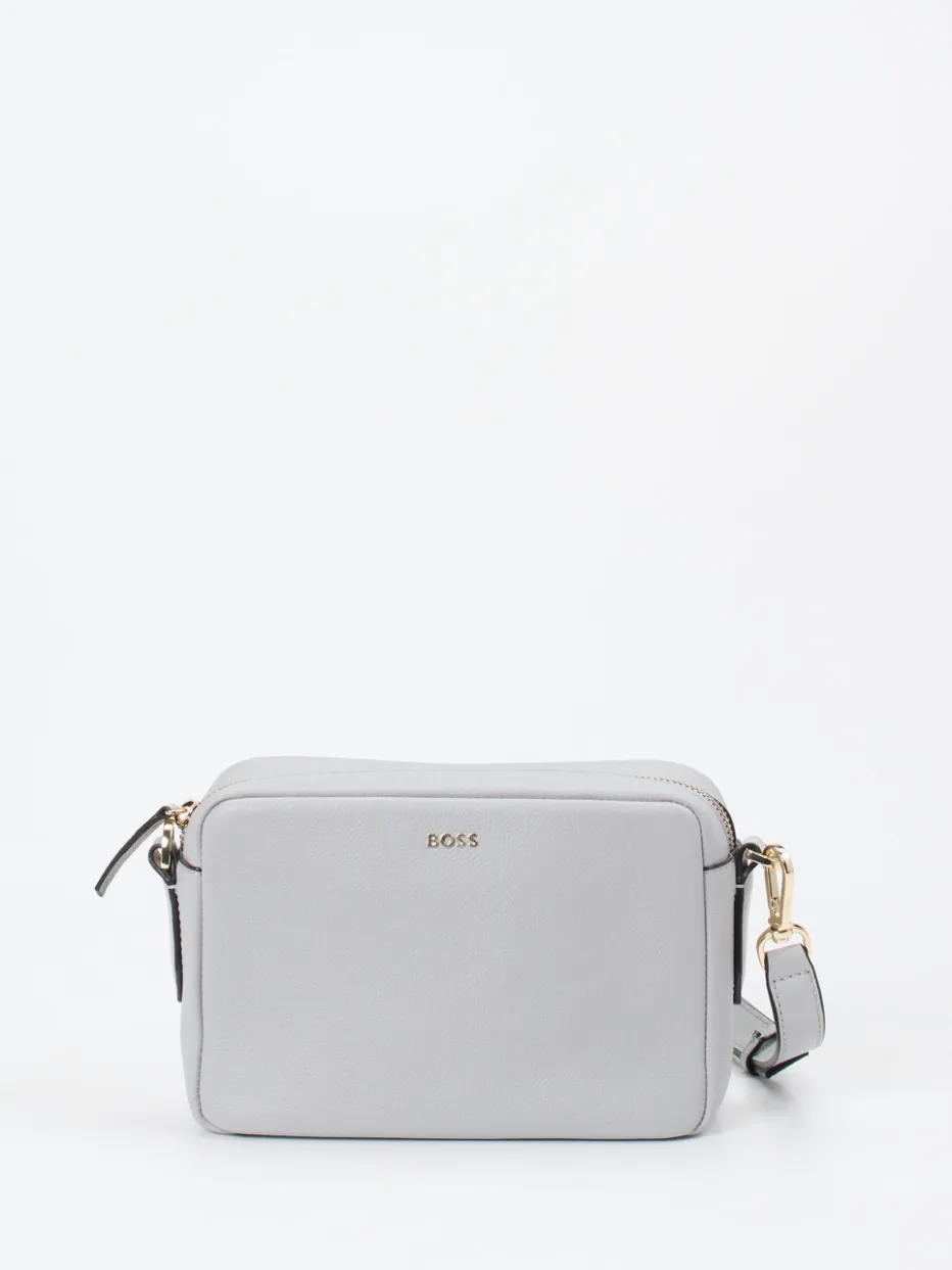 Die Boss Crossbody Bag verbindet strukturierte Eleganz mit moderner Funktionalität. Ihr hochwertiges Kalbleder in Hellgrau und goldfarbene Details setzen dezente Designakzente.