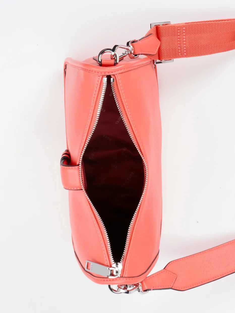 Fein genarbtes Kalbleder in Trendfarbe Koralle trifft auf klare Linienführung und edle Details – ein stilvolles Accessoire mit urbaner Leichtigkeit.