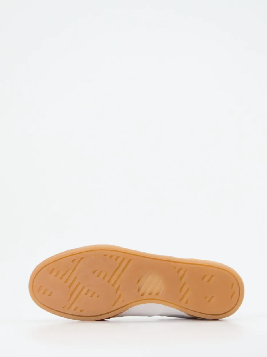 Ob beim Stadtspaziergang oder im Café: Der Sneaker aus hochwertigem Kalbleder mit samtig angeschliffenem Veloursleder an der beigefarbenen Zehenpartie verbindet luxuriösen Komfort mit cleanem Design. Die honigbraune Gummisohle gibt dem flach geschnittenen Modell einen dynamischen Kontrast. Goldfarbene Logos und weiße Schnürung unterstreichen den puristischen Look im Retro-Stil. Optimal kombinierbar mit Jeans im Relaxed Fit und einem weißen Polo. Ein modisches Highlight für entspannte Casual-Konzepte.