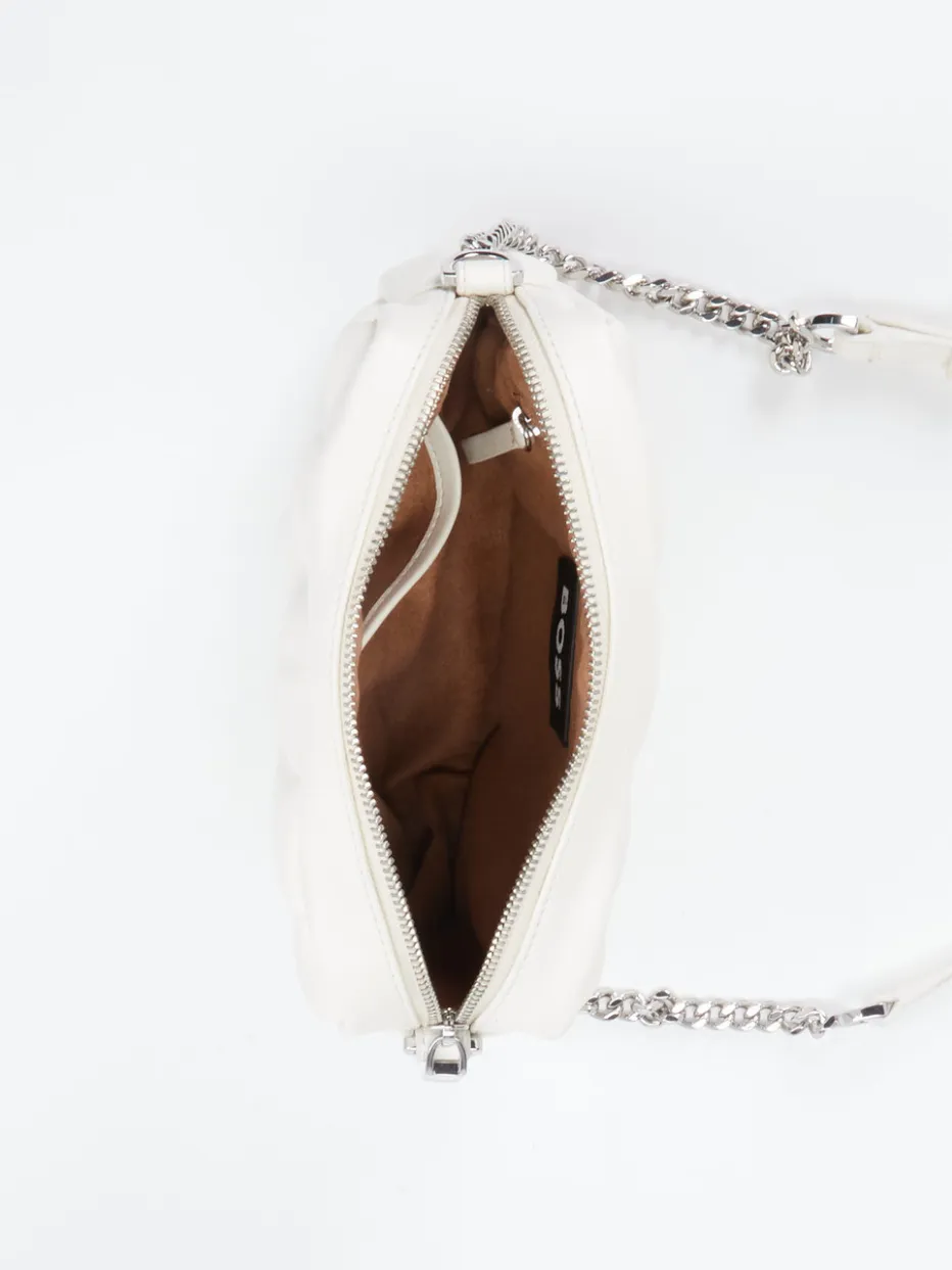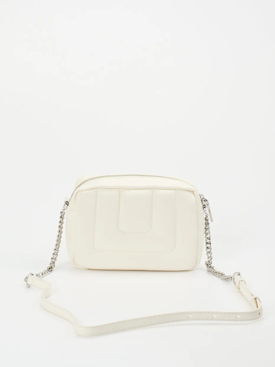 Für alle, die es gern kompakt mögen, ist diese kleine Umhängetasche der Marke Hugo Boss genau das Richtige! Das hochwertige Synthetikmaterial in Lederoptik besticht mit seiner angenehmen Haptik und der Farbgebung in einem sanften Elfenbeinton. Dieser harmoniert hervorragend mit den silberfarbenen Metallapplikationen wie dem Markenlogo und den filigranen Kettenelementen am längenverstellbaren Schulterriemchen. Ein praktischer Reißverschluss mit großem Zipper führt ins Innere, das mit seinem samtigen Textilfutter Ihrer Hand schmeichelt. Hier bietet ein Reißverschlussfach zusätzliche Sicherheit. – Obermaterial: Synthetik – Futter: Textil – Farbe: weiß – Größe: ca. 15 x 21 x 7 cm (H x B x T) – Schulterriemen: ca. 110 cm, verstellbar – Verschluss: Reißverschluss – Innen: ein Hauptfach, ein Steckfach, ein Reißverschlussfach
