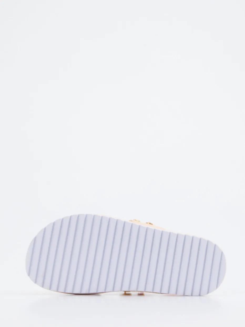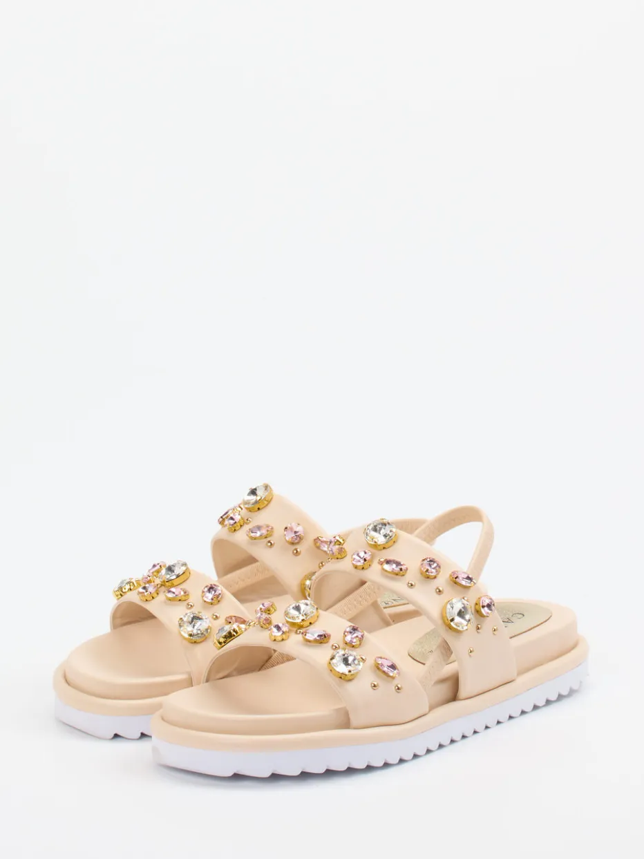 Diese CAFèNOIR Sandalen bringen feminine Eleganz in sommerliche Looks – hochwertiges Kalbleder trifft auf funkelnden Strass in goldfarbenen Fassungen.