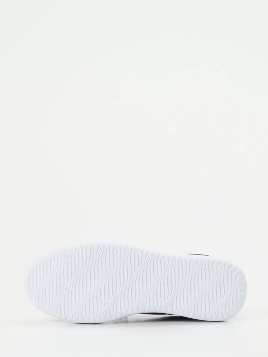 Funktionalität trifft Glamour.CAFèNOIR interpretiert den klassischen Low-Top Sneaker für Damen neu. Ob beim Stadtbummel oder abends im Szene-Club – dieser Sneaker erfüllt den Anspruch an komfortablen Chic. Gefertigt aus schwarzem Lammleder mit mattierter Oberfläche, punktet das Modell mit goldfarbenen Metallösen, einem glänzenden Fersenpatch inklusive Markenlogo und einer kunstvollen Schmuckapplikation in Form einer Krabbe mit Strasssteinen und Perlen. Die erhöhte, weiße Plateausohle aus Leichtzellmaterial sorgt für angenehme Dämpfung und verleiht dem Design eine moderne Silhouette. Das Modell reflektiert aktuelle „Quiet Luxury“-Trends mit ausdrucksstarker Eleganz. Ein stilistisches Statement im zeitgenössischen Streetstyle – CAFèNOIR-typisch detailverliebt umgesetzt.