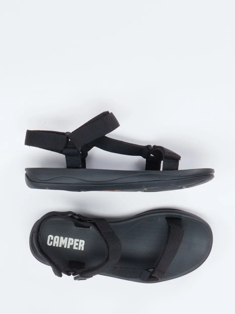 Camper präsentiert eine vielseitige Unisex-Trekkingsandale in Schwarz.
