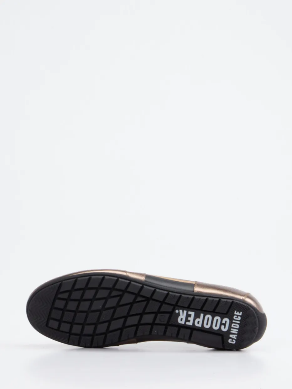 Glanz trifft Streetstyle.Candice Cooper präsentiert diesen modischen Damen-Sneaker. Ob in der City oder auf der nächsten After-Work-Party – die Kombination aus hochwertigem Lackleder und metallicfarbenen Highlights macht das Modell zum stilvollen Hingucker. Schwarzes Lackleder sorgt für makellosen Glanz, während Details in Bronzebraun und Goldton auffällige Akzente setzen. Die flache Silhouette, klassische Schnürung und profilierte Gummisohle unterstreichen den sportlich-urbanen Charakter. Goldfarbene Seitenstreifen und markentypisches Logo runden das Design ab. Harmoniert besonders gut mit monochromen Looks oder Statement-Bags. Premium-Komfort und ausgefallener Look – typisch Candice Cooper.