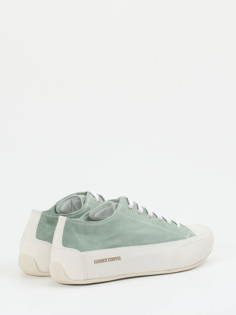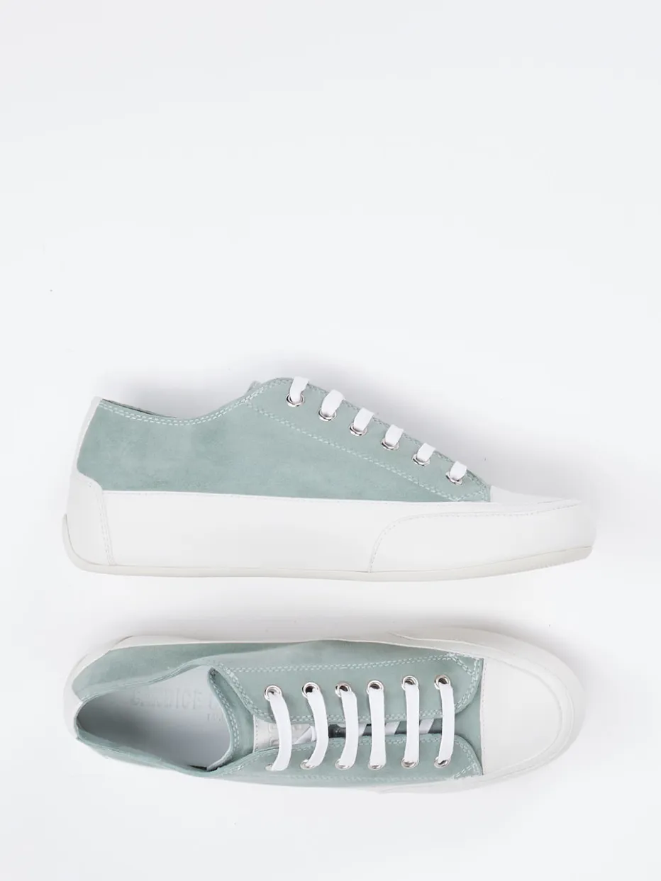 Frischer Akzent für entspannte Styles.Candice Cooper präsentiert mit diesem Sneaker ein stilvolles Modell aus der Kategorie Low-Top Sneaker. Ideal für freie Tage oder Reise-Looks, vereint der Schuh minimalistisches Design mit einem hochwertigen Materialmix: samtig angeschliffenes Veloursleder in sanftem Salbeigrün trifft auf leinenweißes, glattes Kalbleder. Eine klassische, niedrige Silhouette wird durch eine robuste, helle Gummisohle ergänzt, während tonale Nähte und eine dezente Branding-Prägung die klare Formsprache unterstreichen. Die Schnürung mit Metallösen sorgt für sicheren Halt, ergänzt durch eine weich gepolsterte, herausnehmbare Innensohle. Ein saisonaler Pastellton, kombiniert mit urbaner Lässigkeit von Candice Cooper.