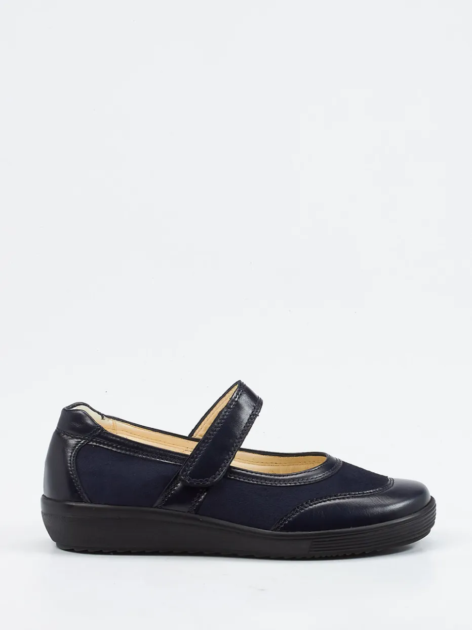 Christian Dietz präsentiert mit diesen Mary Janes ein alltagstaugliches Komfortmodell für Damen. Gefertigt aus Stretchmaterial mit Velourscharakter in Kombination mit dunkelblauem Kalbleder verbindet es höchsten Gehkomfort mit unaufdringlicher Optik.