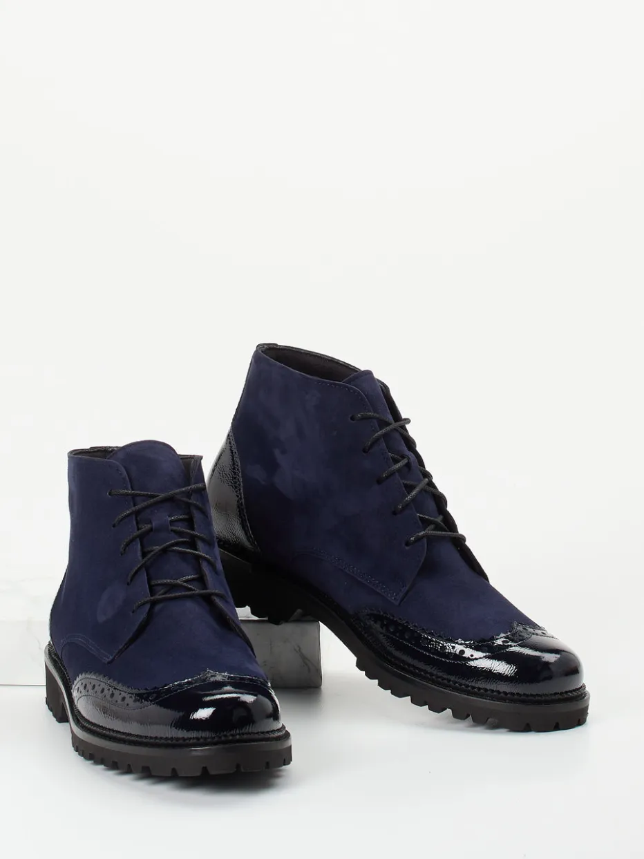 Diese Schnürboots verbinden hochwertigen Komfort mit stilistischen Kontrasten aus samtigem Velours- und glänzendem Lackleder. Die profilierte Laufsohle verleiht sicheren Halt an kalten Tagen.