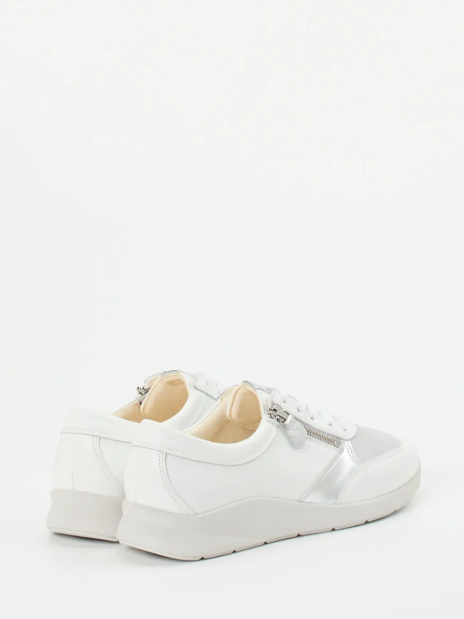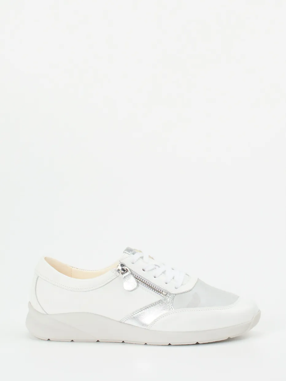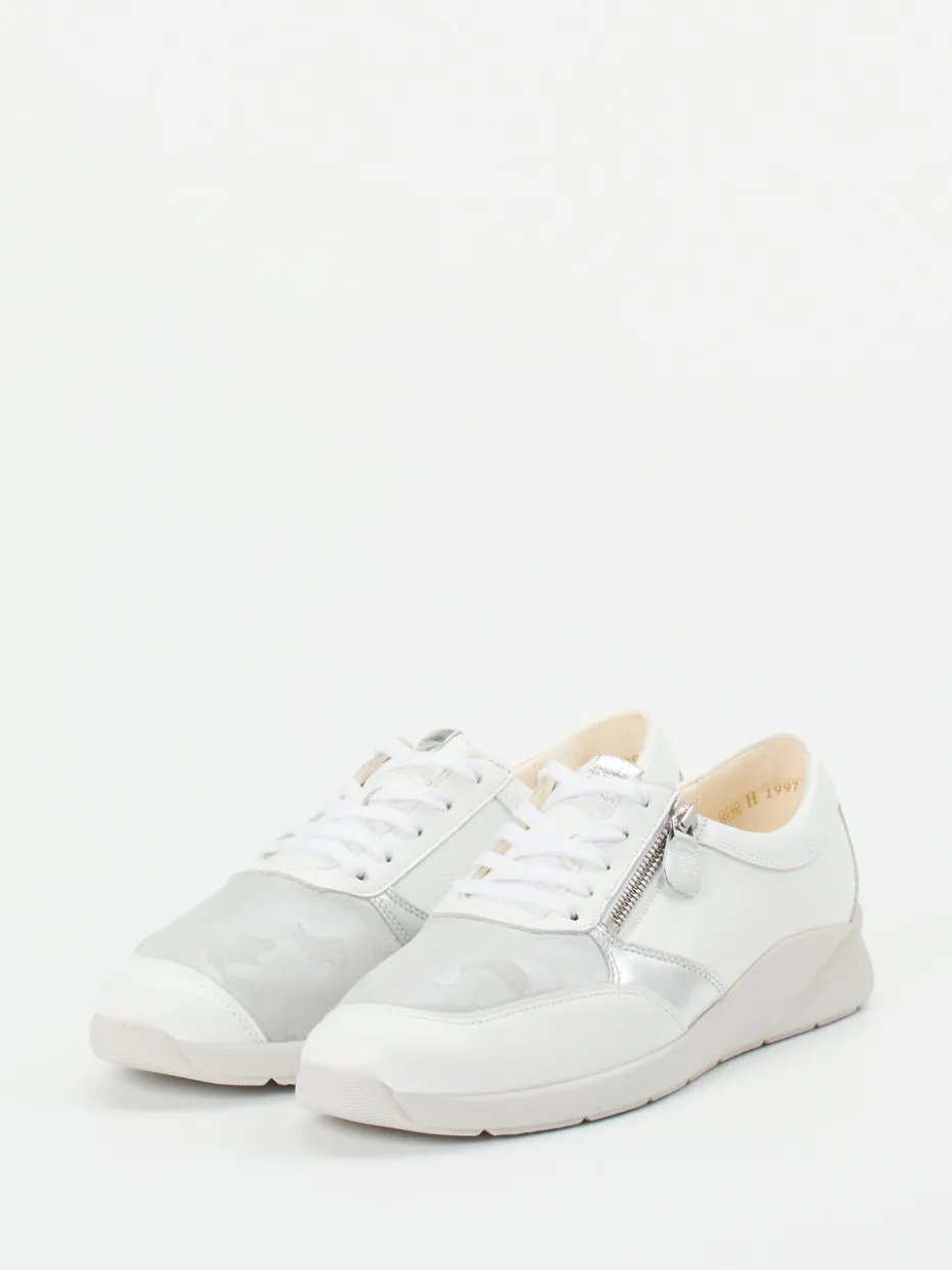 Sportlicher Komfort mit Stilanspruch.Christian Dietz zeigt mit diesem Sneaker einen modisch-funktionalen Begleiter aus der Komfortlinie. Für entspannte Wege durch Stadt und Alltag sorgen die dämpfende Gummisohle sowie die ausgezeichnete Passform mit Weite H. Das verwendete Kalbleder ist matt gehalten und wird durch silberfarbene Metallic-Akzente sowie dezente Camouflage-Effekte stilvoll aufgewertet. Der Reißverschluss an der Seite erleichtert das Anziehen, während das atmungsaktive Innenleben aus Leder und Textil ein angenehmes Tragegefühl bietet. Der klassisch-runde Schnitt folgt minimalistischen Designlinien, die sich vielseitig kombinieren lassen – etwa mit weißen Jeans oder leichten Jacken. Ein Sneaker, der Komfort und urbanes Design souverän vereint.