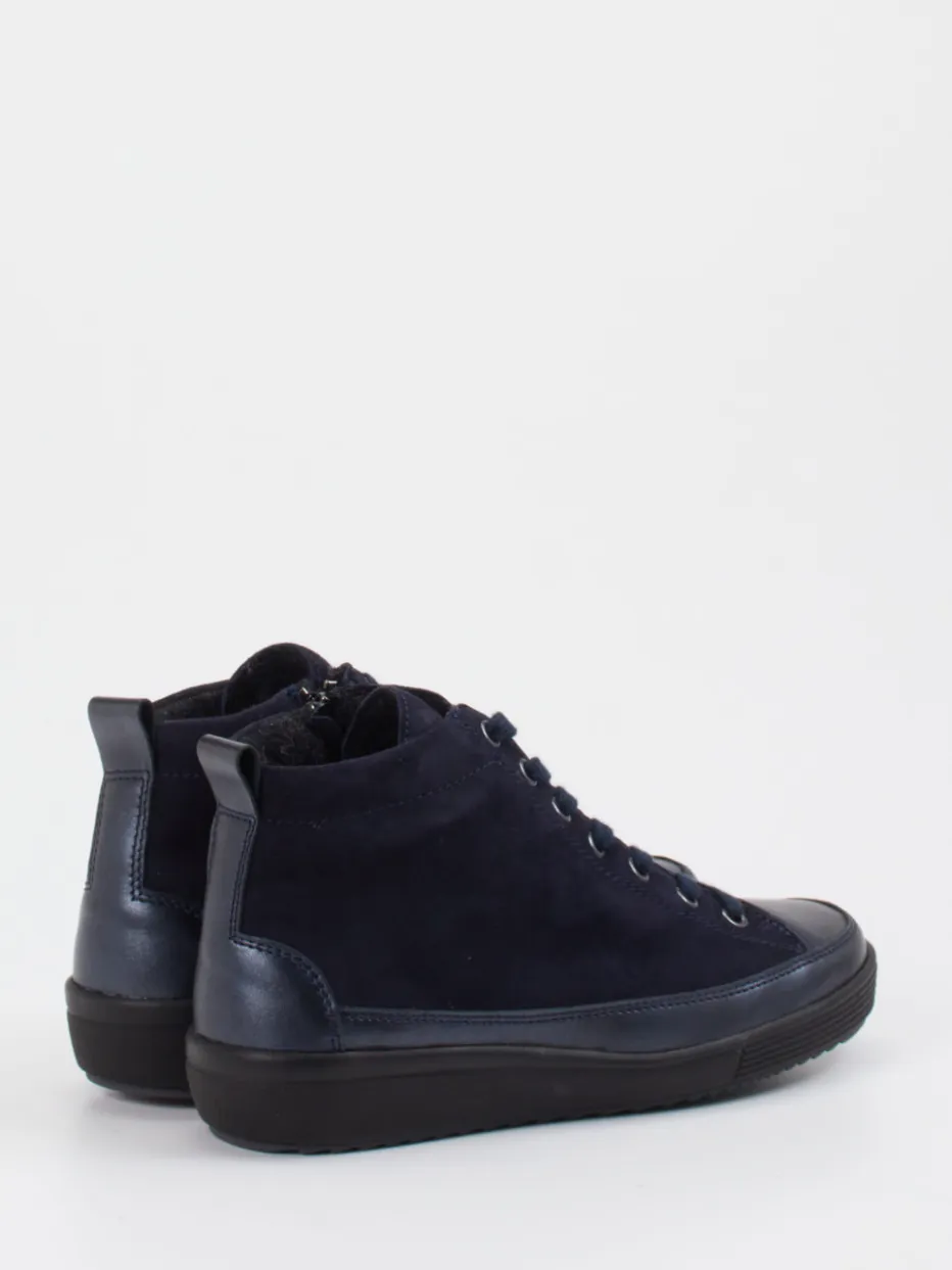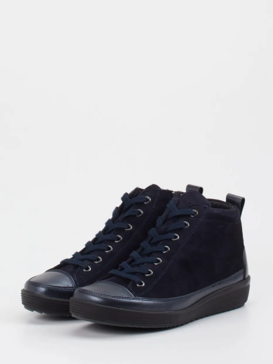 Diese komfortable Mid-Top-Stiefelette kombiniert samtiges Veloursleder mit dezenter Glattleder-Verstärkung. Der seitliche Zipper sorgt für zuverlässigen Einstieg auch an hektischen Tagen.