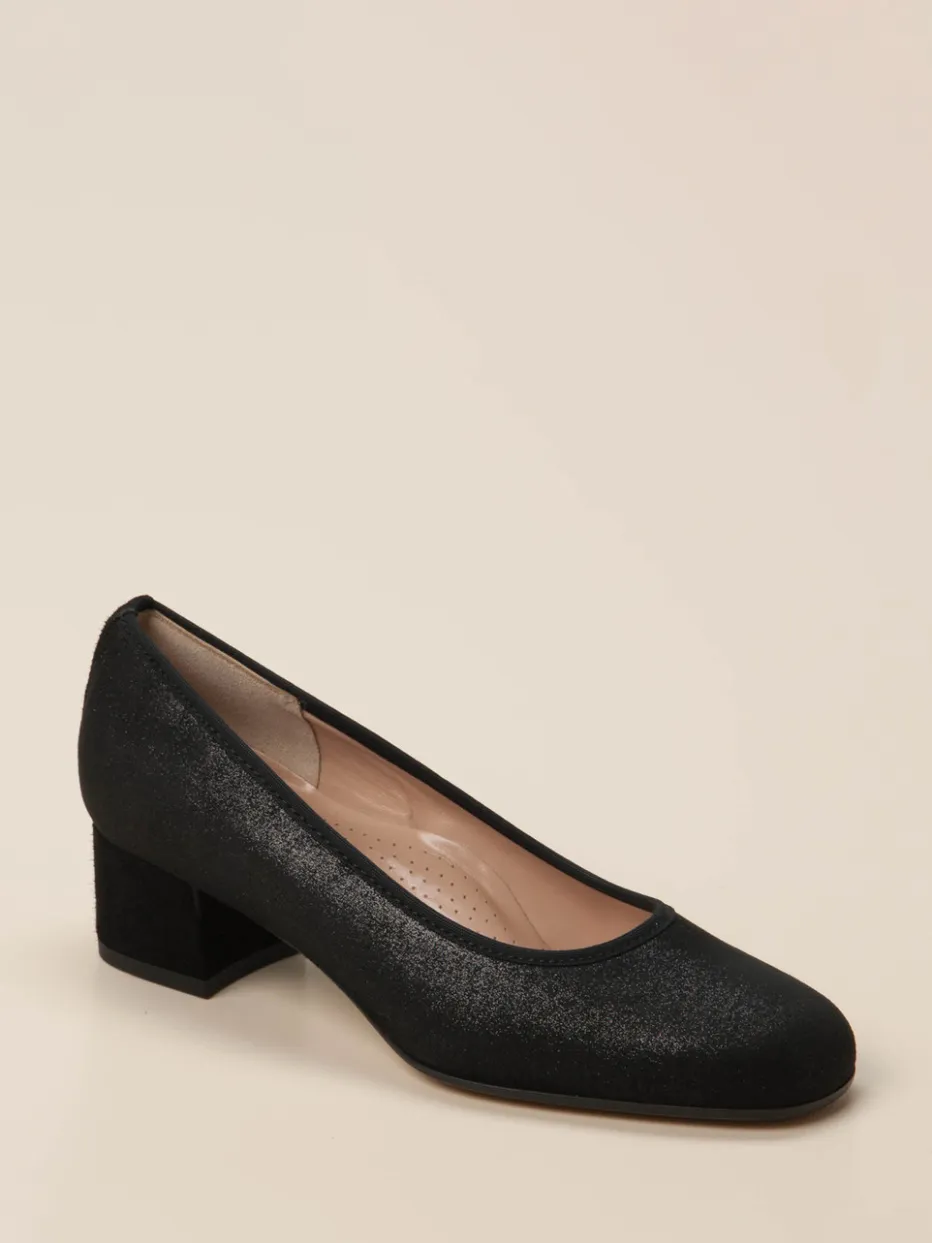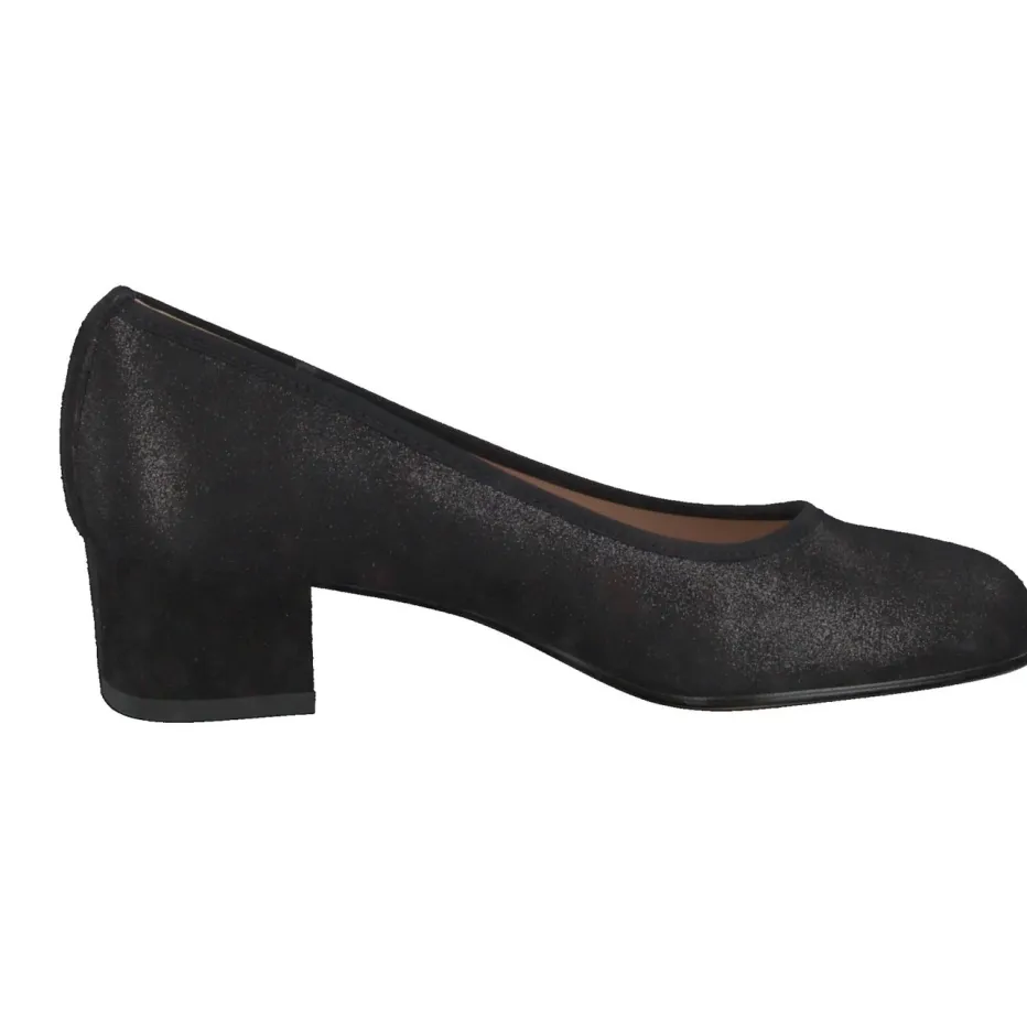 Die Marke Cinzia Valle präsentiert mit diesem Pumps ein formschönes Modell für Business- und Festanlässe. Bei Meetings wie bei Empfängen überzeugt dieser Schuh durch Komfort und Stil. Das schwarze Textilmaterial bringt mit seiner leicht schimmernden Oberfläche eine zurückhaltende Raffinesse ins Spiel. Eine klassische, rund zulaufende Silhouette und das tonale Finish unterstreichen den minimalistischen Look. Gepolstertes Lederfutter und ein blockiger Absatz mit 4 cm Höhe sorgen für ganztägiges Wohlgefühl. Der Schlupfeinstieg erleichtert den Zugang, während die rutschhemmende Ledersohle zusätzlichen Halt bietet. Cinzia Valle steht für tragbare Ästhetik – modisch fokussiert und dezent akzentuiert.