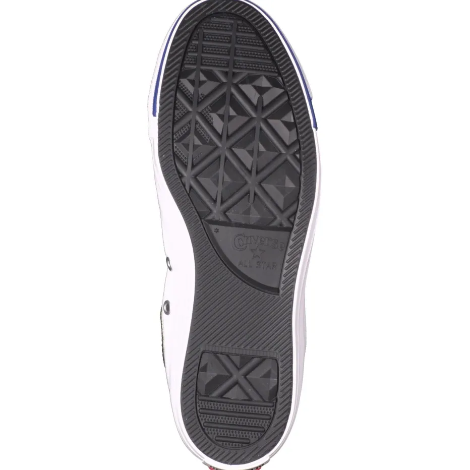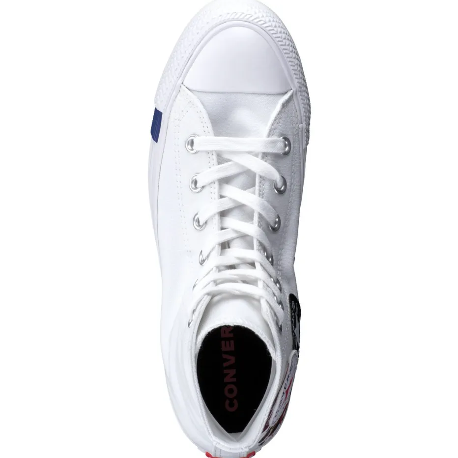 Canvas-Design trifft Patch-Trend.Converse liefert mit diesem High-Top-Sneaker ein trendstarkes Unisex-Modell aus weißem Canvas mit Retro-Flair. Für expressive Streetstyle-Settings ist der Sneaker mit seiner klassisch hochgeschlossenen Silhouette, der strukturierten Gummisohle und der markanten Zehenkappe ideal ausgestattet. Das matt weiße Obermaterial besteht aus robustem Canvas, ergänzt durch auffällige, mehrfarbige Patch-Applikationen und farbige Details an der Sohle. Markenlogos fügen sich nahtlos ins Design ein und betonen den All-Star-Charakter. Perfekt kombinierbar mit Denim, Graphic-Shirts oder lässiger Freizeitmode. Ein Converse-Original mit ikonischer Formsprache und unverkennbarem Stilprofil.