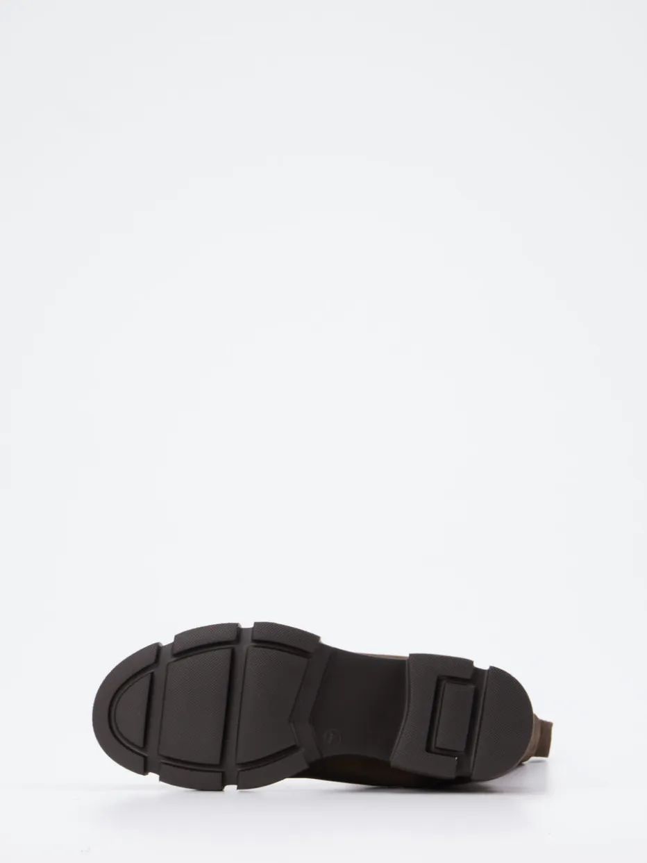 Strukturiert, stylisch, stadtbereit.Chelsea Boots von Copenhagen bieten charakterstarke Lässigkeit für urbane Alltagsmomente. Gefertigt aus samtigem Velours-Kalbleder in tiefem Dunkelbraun, ergänzt durch tonige elastische Einsätze und markante Zuglaschen, betonen sie einen geradlinigen Look mit mittelhohem Schaft. Die chunky profilierte Gummisohle mit betontem Rahmen garantiert Trittsicherheit – bequem unterstützt durch ein weiches Kalblederfutter und eine gepolsterte Innensohle. Inspiriert vom Utility-Trend entsprechen sie dem Stilverständnis von „Quiet Luxury“. Lässt sich vielseitig zu Oversized-Mänteln und Naturtönen kombinieren. Copenhagen steht für nordische Schlichtheit mit handwerklichem Anspruch.
