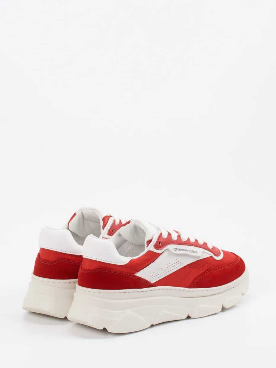 Dieser Sneaker von Copenhagen überzeugt mit signalrotem Veloursleder, harmonisch kombiniert mit Textil und weißen Kontrastdetails – perfekt für einen prägnanten Streetstyle-Auftritt.