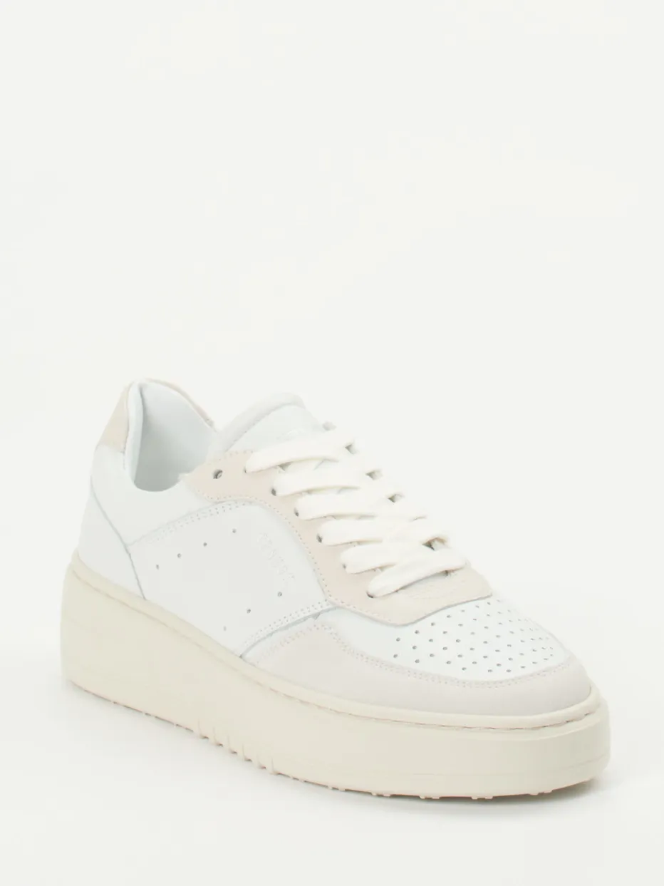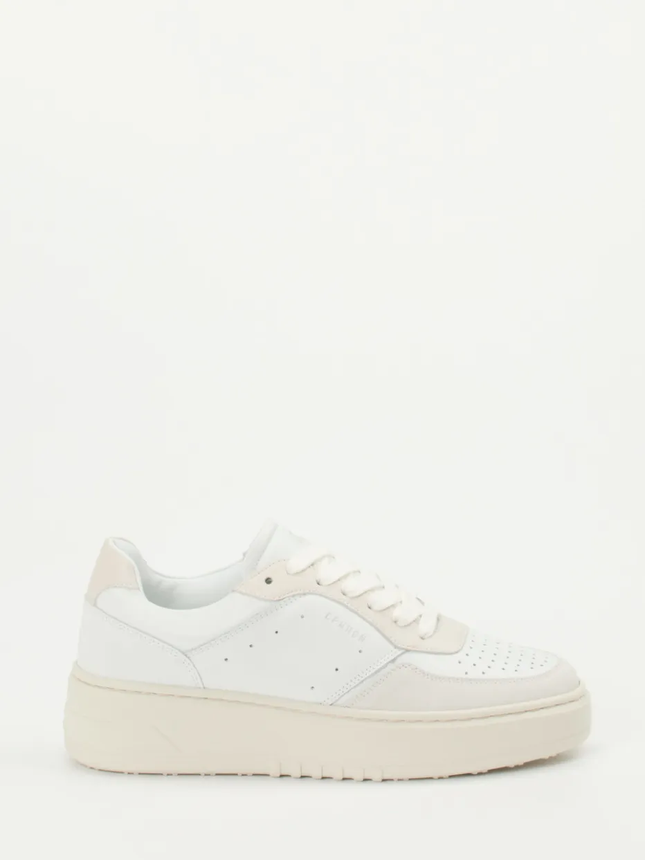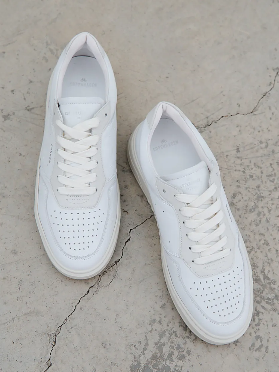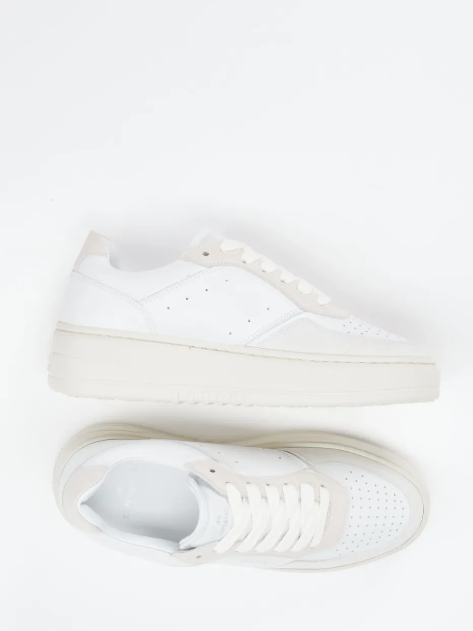 Minimalismus auf hohem Niveau.Copenhagen präsentiert mit diesem Plateau-Sneaker ein cleanes Modell aus feinem Kalbleder für den urbanen Alltag. Ob beim Stadtbummel oder im Café – die Kombination aus weißem Kalbleder und Offwhite-Overlays verleiht dem Schuh eine moderne Klarheit. Glatt- und Veloursleder mit matter Textur setzen dezente Kontraste, während die perforierte Zehenpartie funktionelle Eleganz bietet. Die klassische Low-Silhouette mit schnürbarem Einstieg unterstreicht den minimalistischen Look. Die erhöhte Gummisohle greift das Farbkonzept stimmig auf und verbindet Komfort mit einem aktuellen Streetwear-Flair. Ein stilvoller Begleiter mit skandinavischer Ästhetik und hochwertigem Finish.