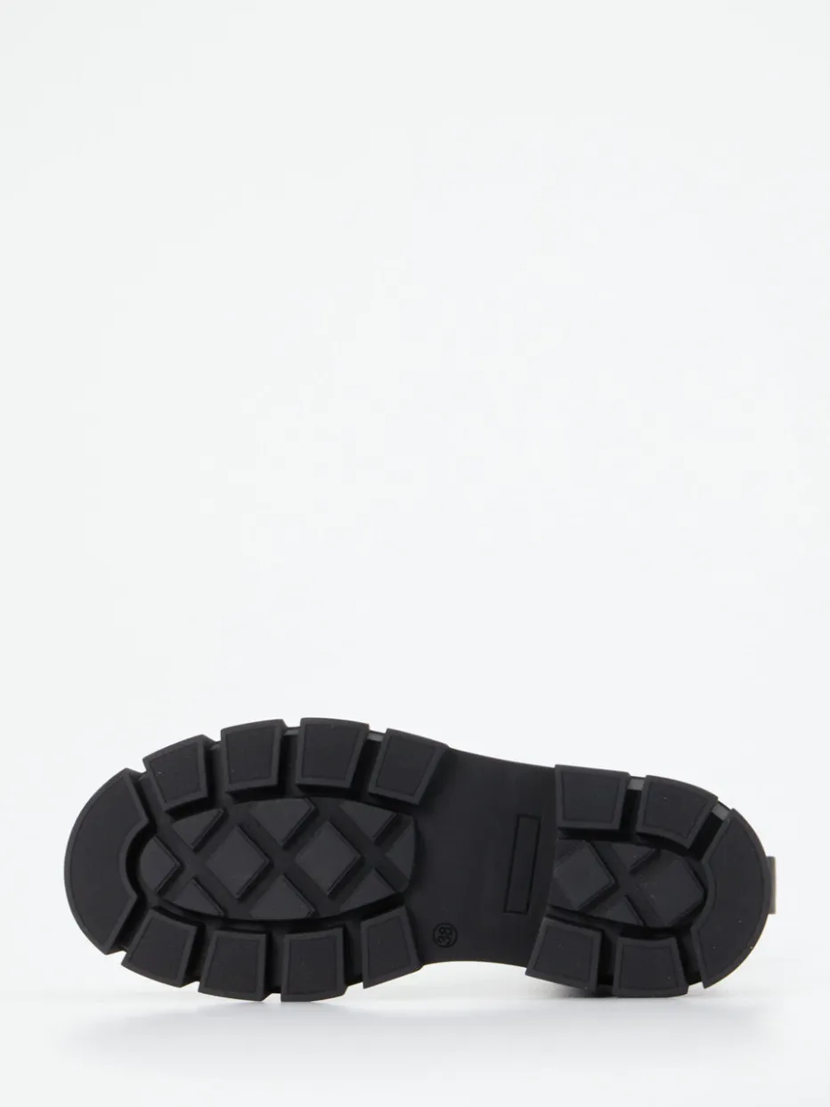 Die schwarze Schnürstiefelette von Copenhagen verbindet hochwertiges, genarbtes Kalbleder mit einer trendstarken Chunky-Sohle und funktionalem Reißverschluss – ein gelungener Mix aus Stil und Komfort.