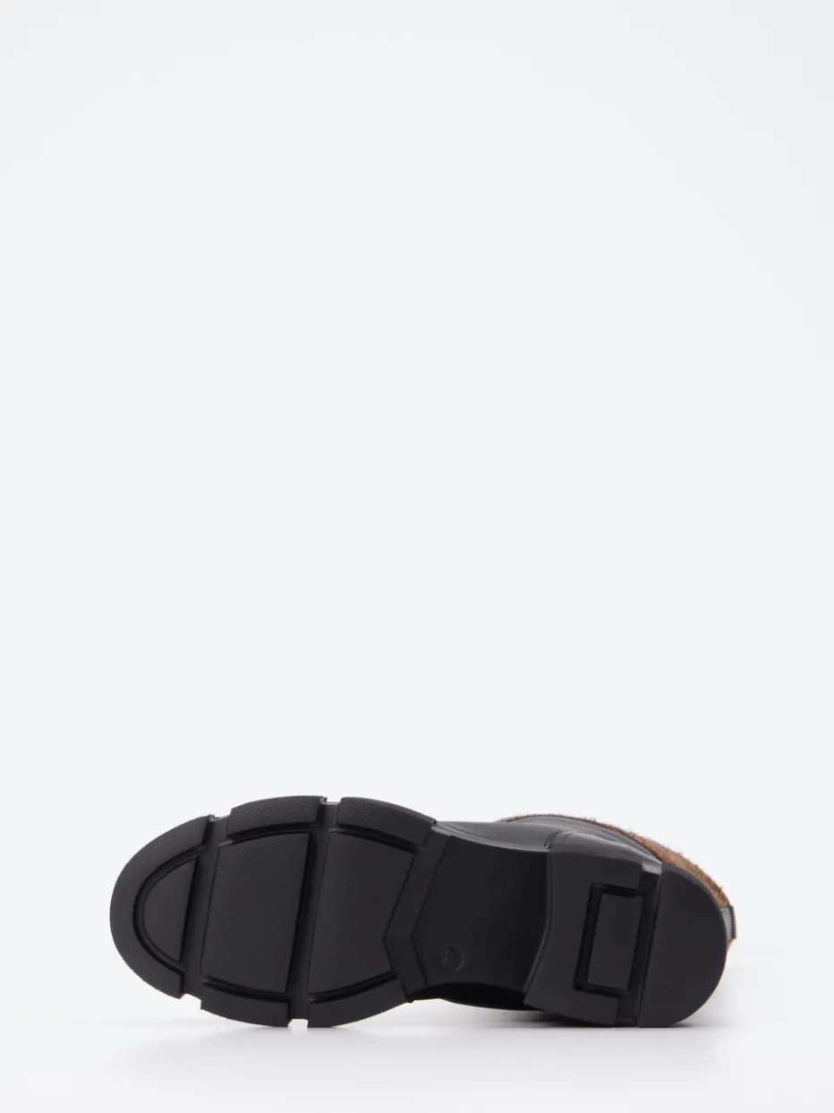 Dieser Winterstiefel von Copenhagen kombiniert schwarzes Glattleder mit einem sichtbaren Lammfellfutter und strukturierter Oberfläche. Ideal für stilbewusste Trägerinnen mit einem Faible für Funktionalität und minimalistisches Design.