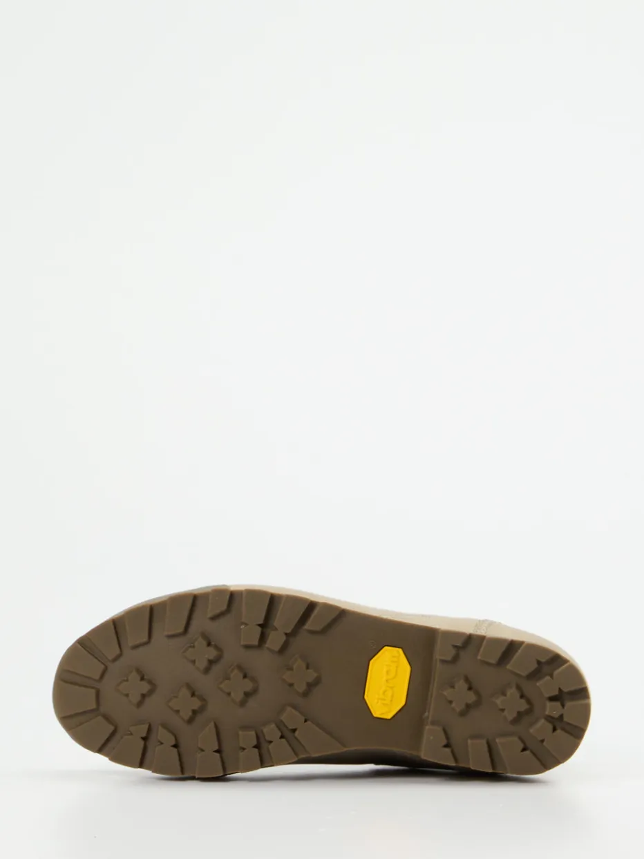 Das beigesandfarbene Veloursleder ist samtig angeschliffen und wird durch eine atmungsaktive, wind- und wasserdichte GORE-TEX-Membran ergänzt. Altrosafarbene Schnürsenkel, eine klassische hochgeschlossene Silhouette und tonale Ziernähte bestimmen den authentischen Look. Die griffige Vibram-Profilsohle sorgt für Stabilität auf unebenem Terrain. Innen bietet ein weich gepolstertes Textilfutter angenehmen Tragekomfort. Ideal für Wanderer mit Sinn für Ästhetik.
