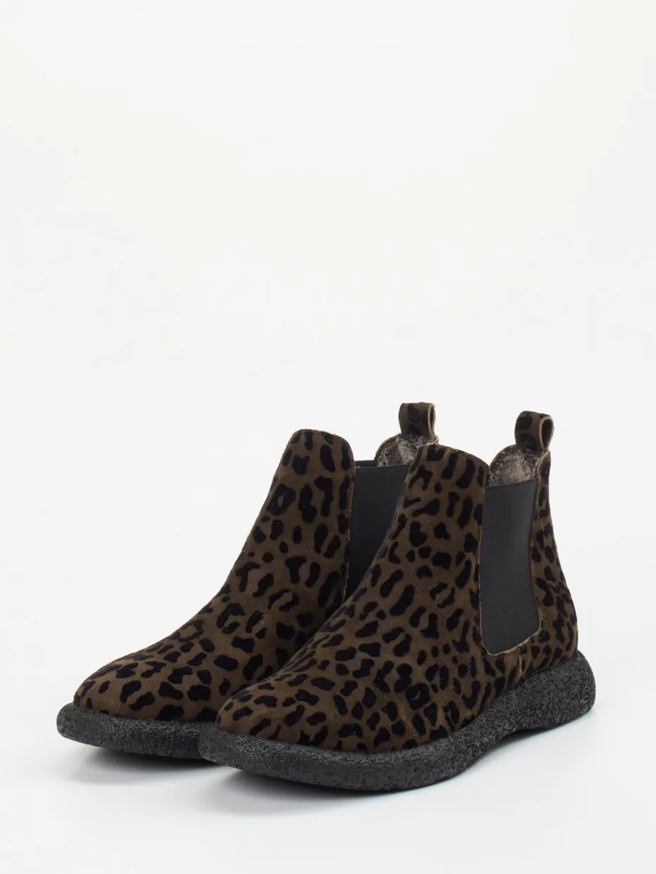 Damen Donna Carolina – Chelsea Boots aus Veloursleder Leoprint